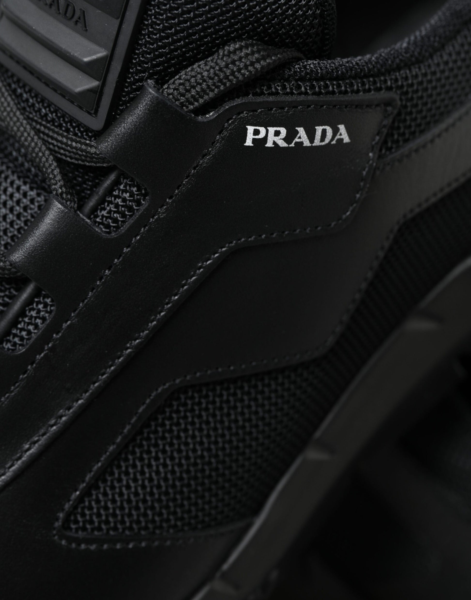 Prada Black Mesh Panel Low Top Twist Trainers Sneakers Shoes