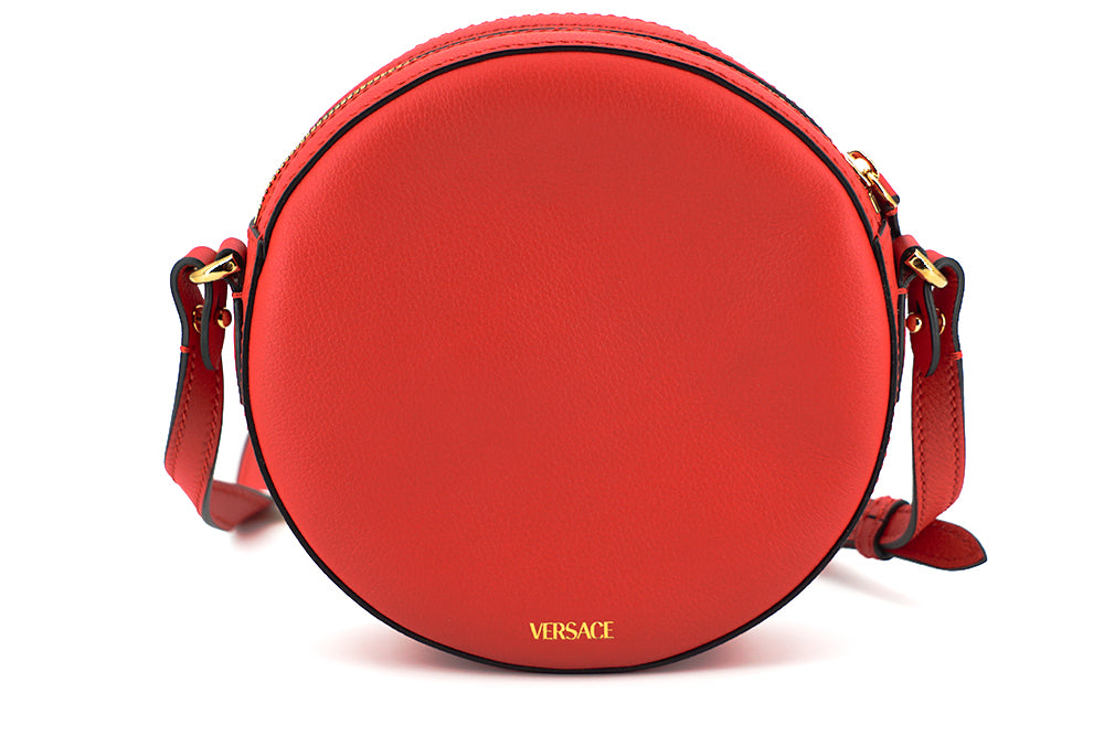 Versace Red Calf Leather Round Disc Shoulder Bag