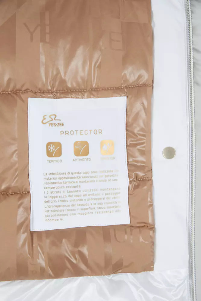 Yes Zee women’s jacket made of technical fabric, real goose down filling, hood with fur, front zipper and button closure, inside pockets and side pockets with zipper closure.