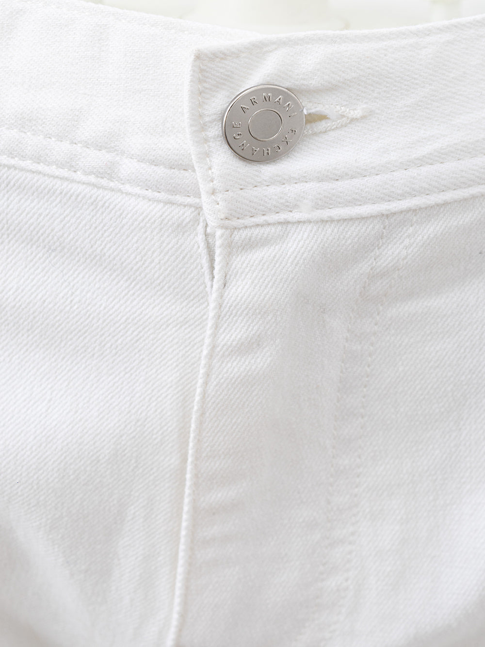 Model: Armani Exchange jeans trousers, white powder, five pockets, regular fit. Front closure with covered buttons, two side pockets, one small pocket and two pockets on the back. Suede tag on the back with logo. Composition:97% Cotton, 3% Elastane