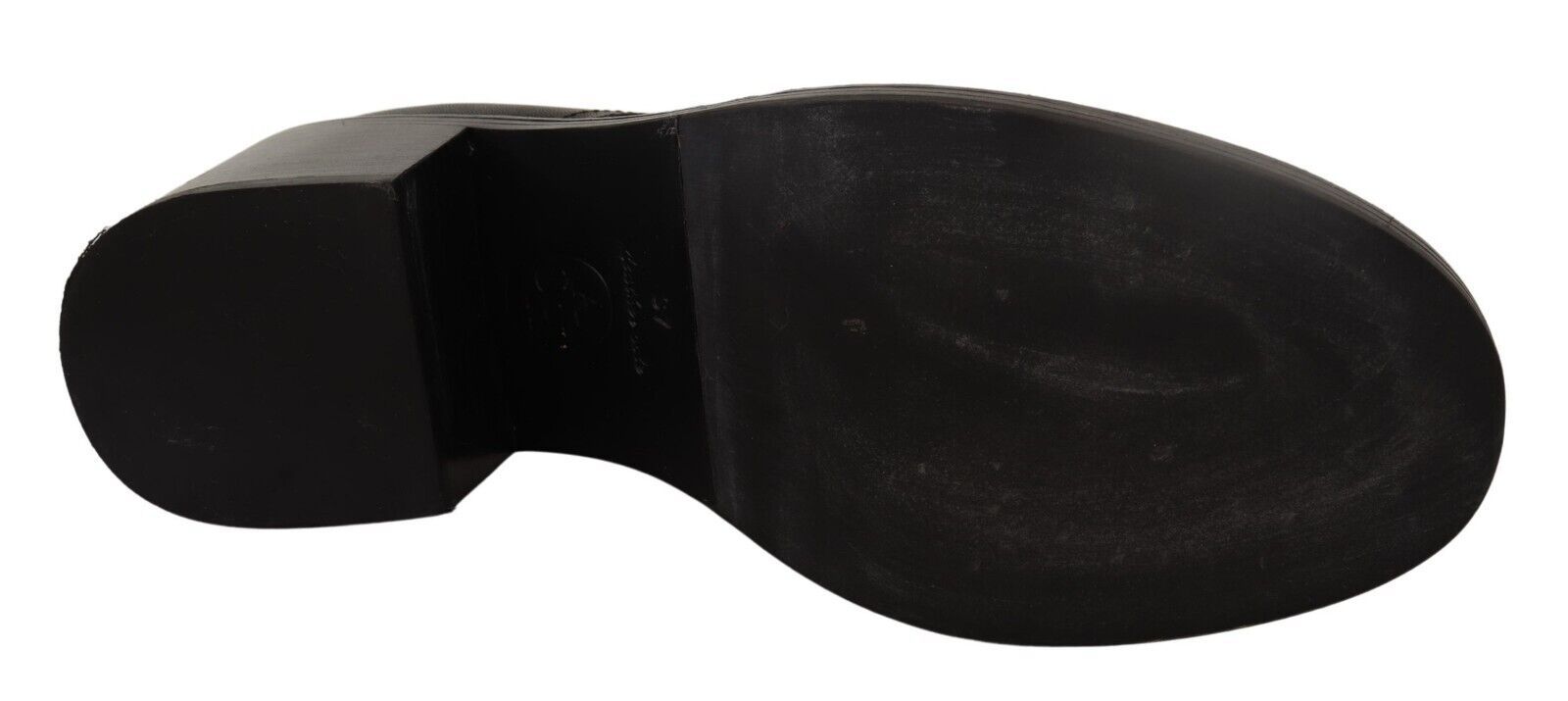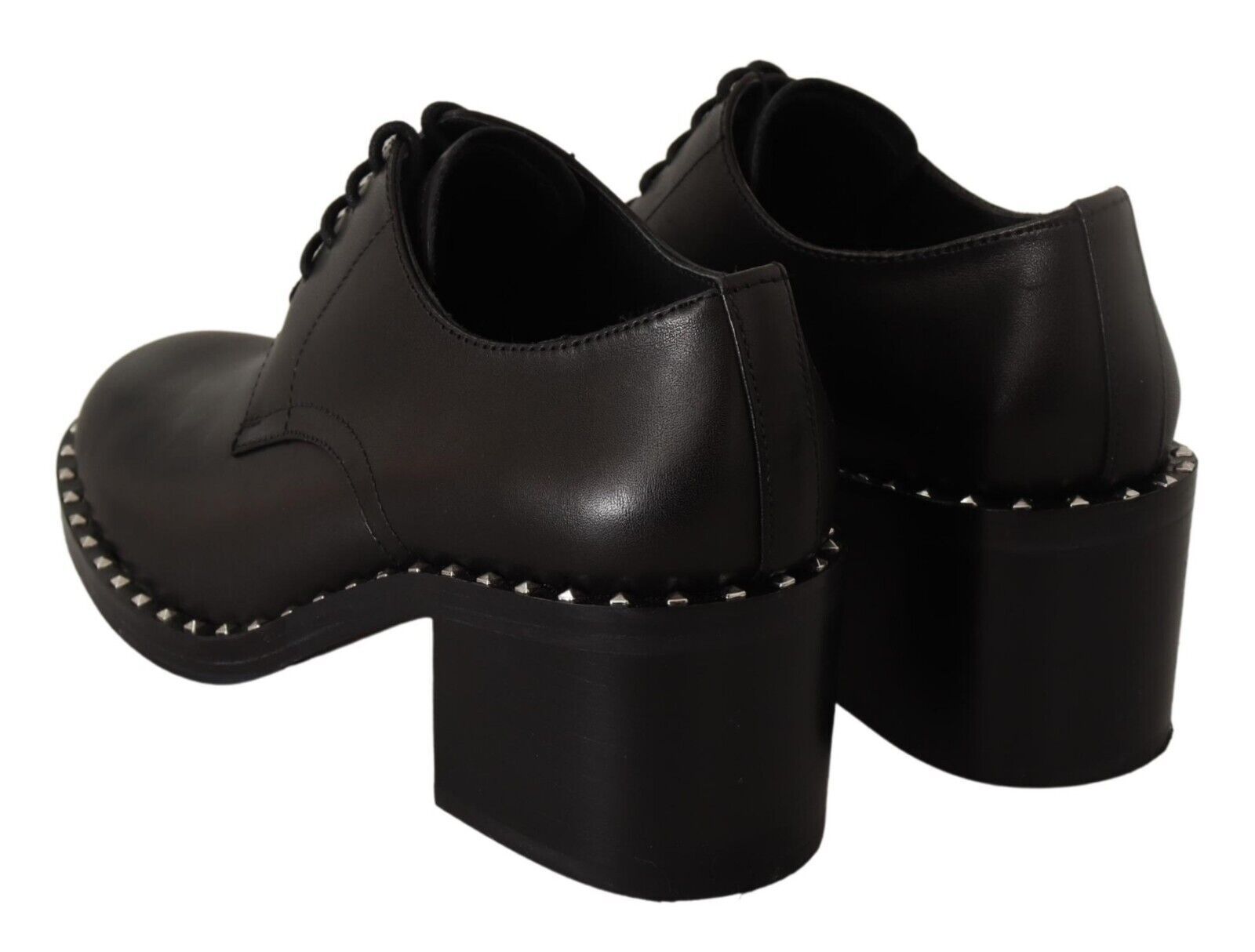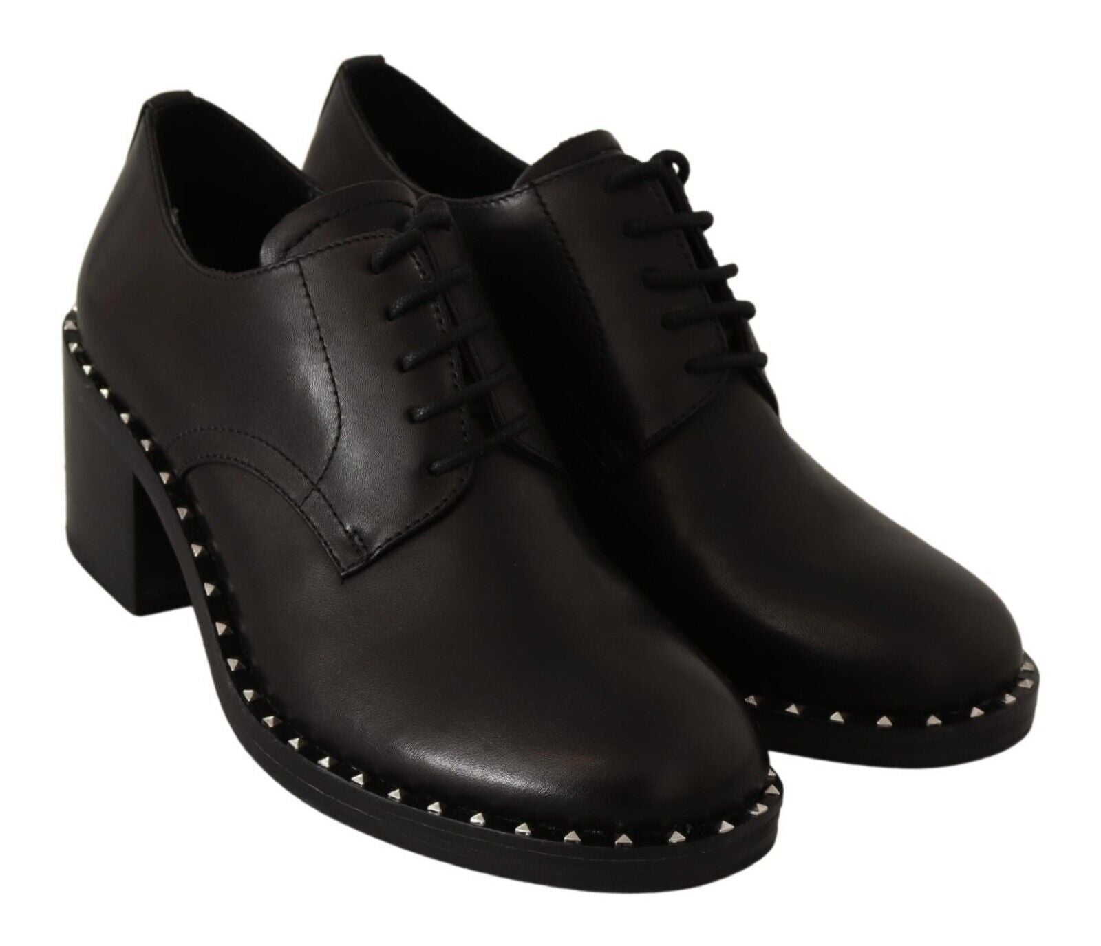 ASH Black Leather Block Mid Heels Lace Up Studs Shoes