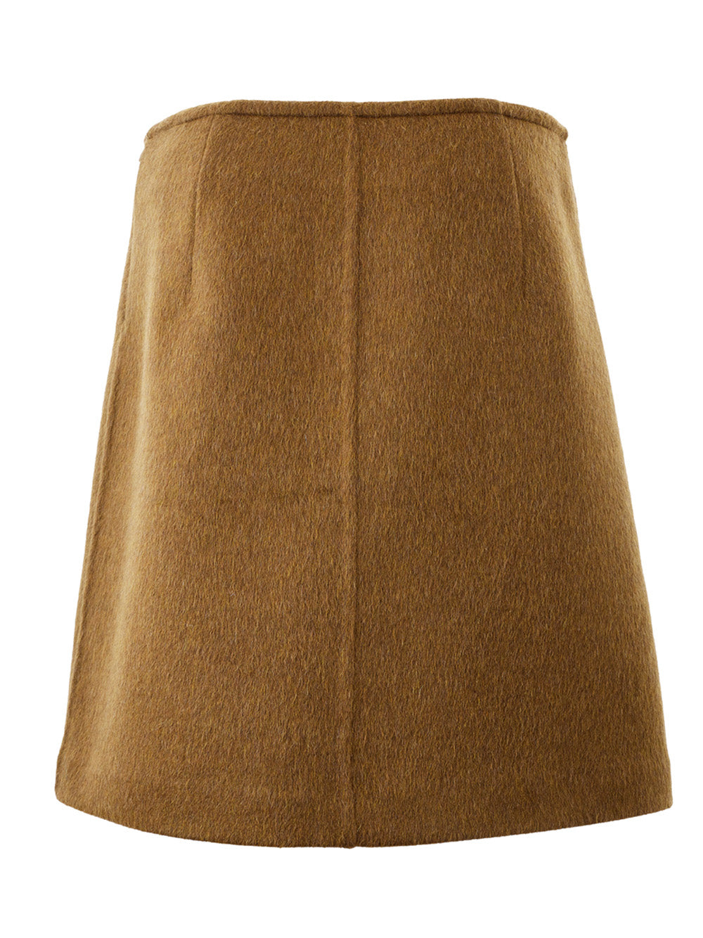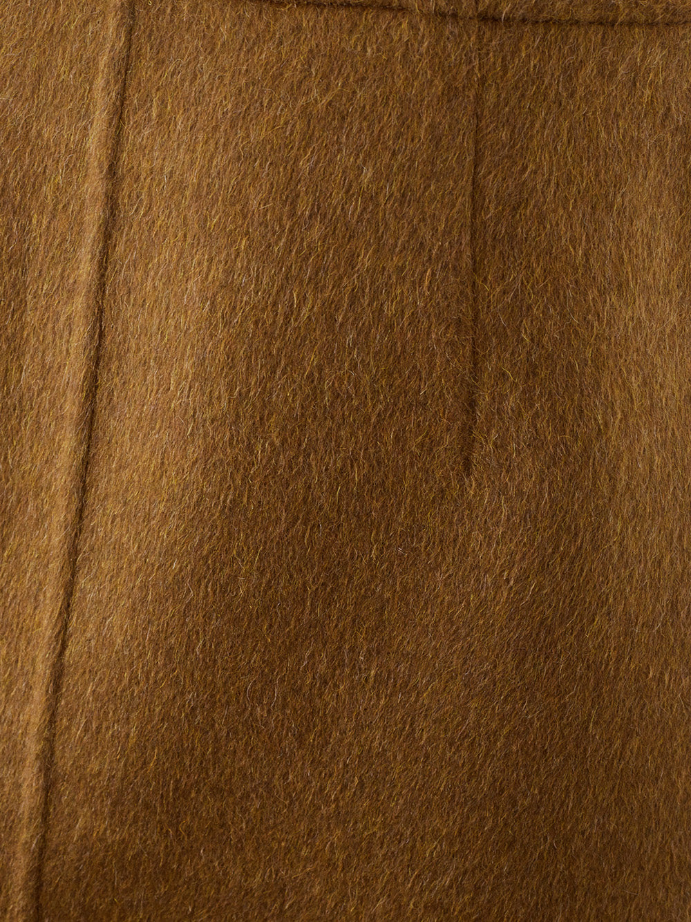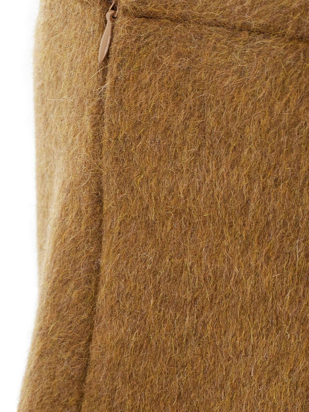 Gorgeous brand new with tags, 100% Authentic Bottega Veneta. Wool mohair skirt in coconut brown, middle length, pencil style, back covered zip closure, ‘cavallino’ leather effect. Sku Item: 668574 V0XS0