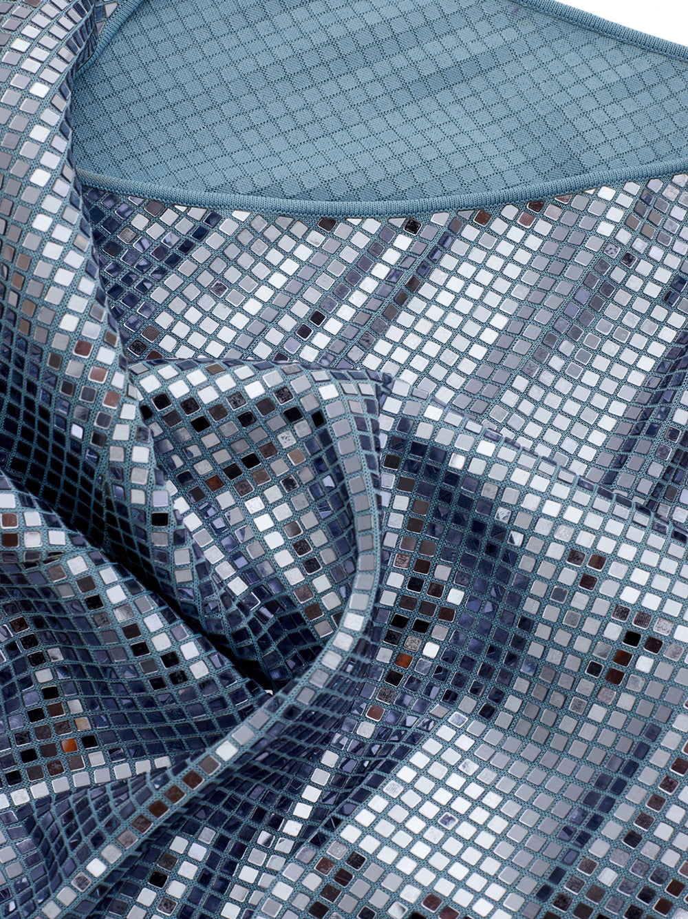 Gorgeous brand new with tags, 100% Authentic Bottega Veneta. Mirror mosaic allover dress in light blue, viscose, middle length, halter neck.