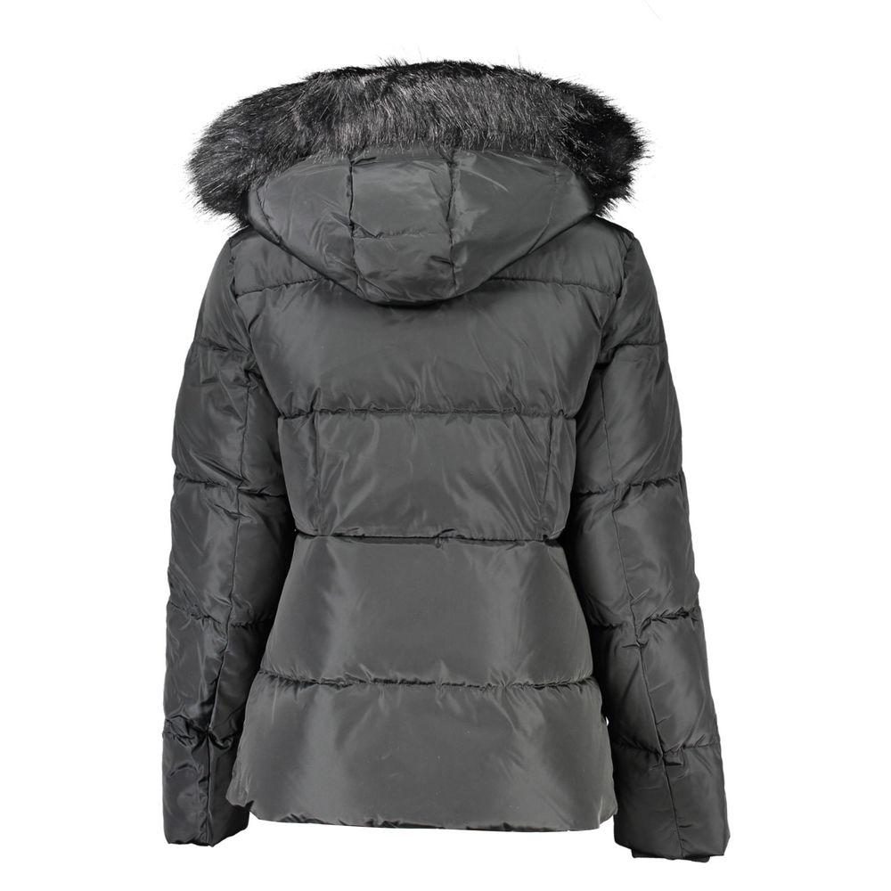 LONG SLEEVE JACKET, HOOD WITH REMOVABLE FUR, 2 POCKETS, CONTRAST DETAILS, PRINT, LOGO