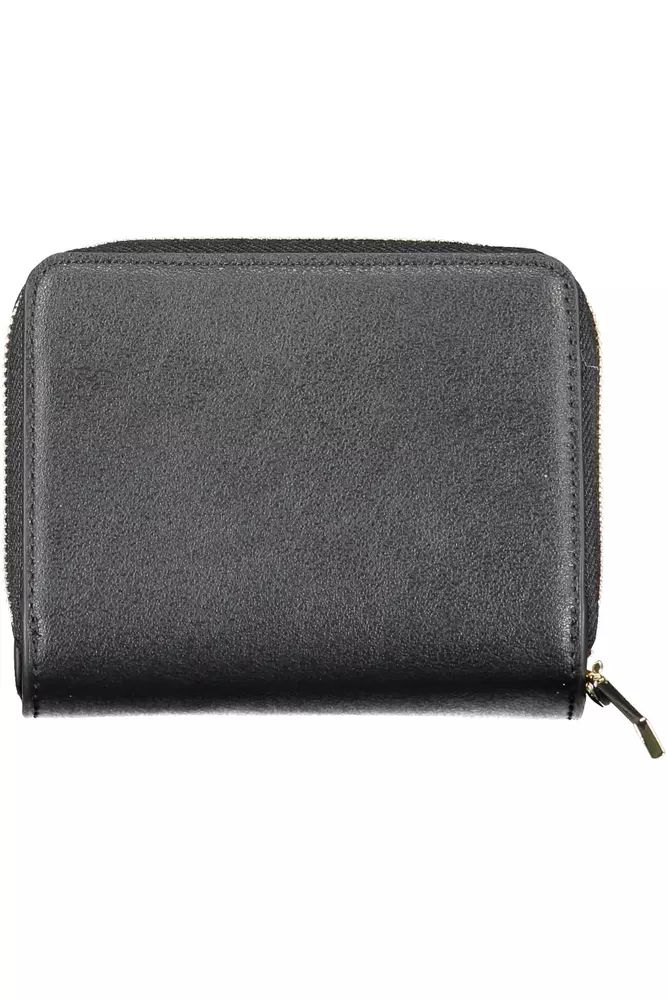 wallet, internal spaces consisting of card, coin purse, rfid lock, zip and snap closure, logo