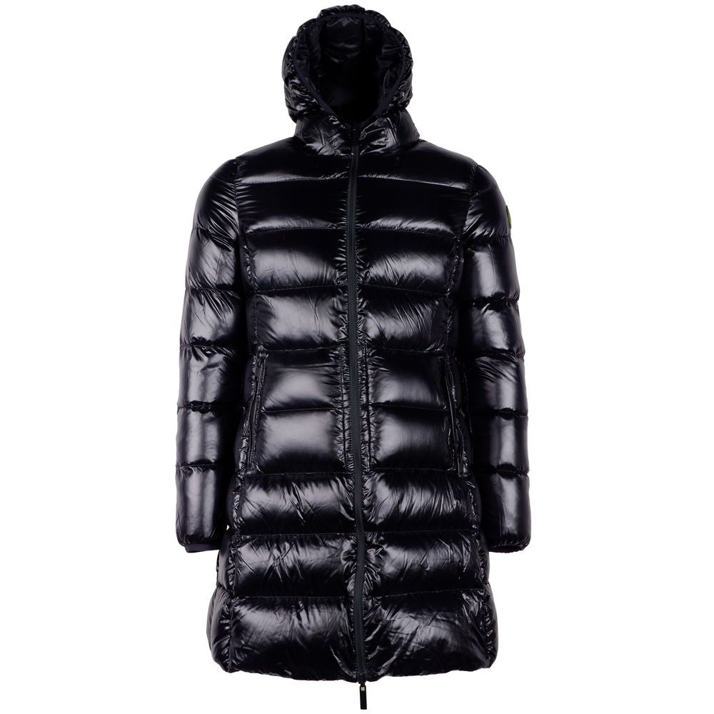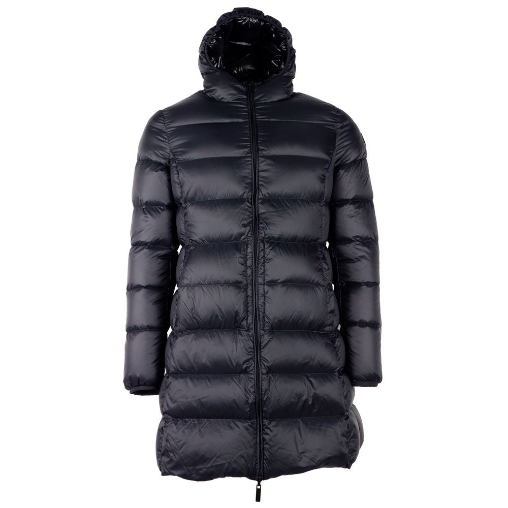 Centogrammi long reversible down jacket in nylon, one high glossy black and the other matt, duck down padding, hood, zip closure and two side pockets with zip closure