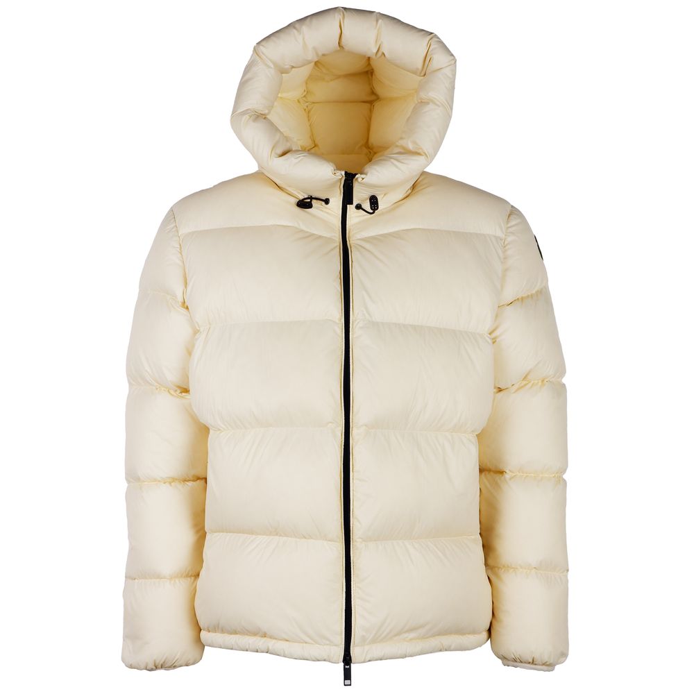 Centogrammi puffer jacket in cream white nylon with duck down padding, hood with drawstring, zip closure and two side pockets with zip closure, internal cell phone pocket.