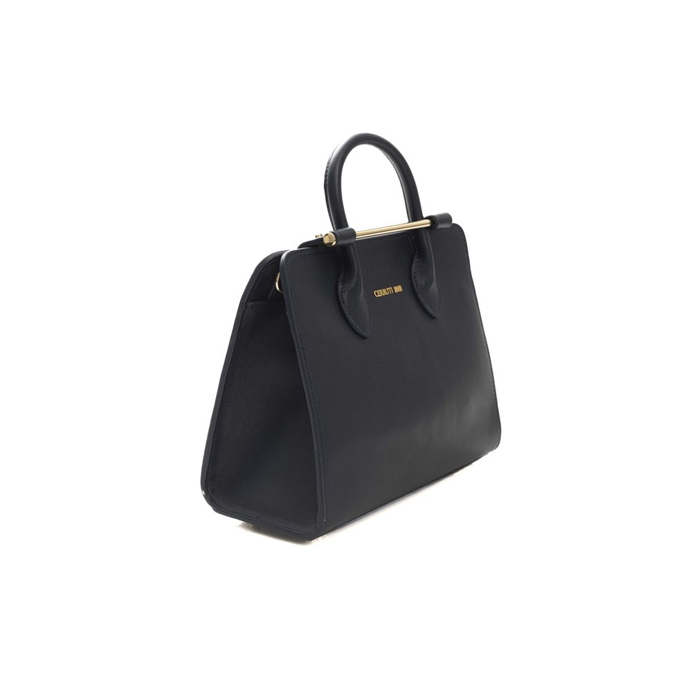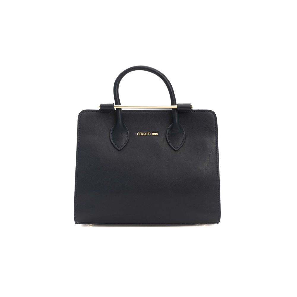 Cerruti 1881 Elegant Blue Calf Leather Shoulder Bag with Golden Accents