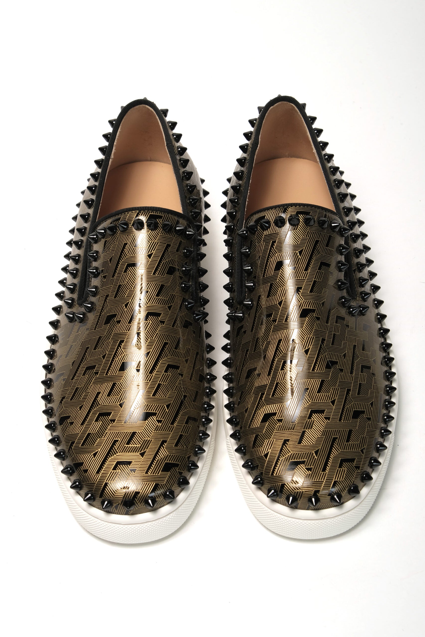 Christian Louboutin Black/Gold Version Pik Boat Flat Pat Shoes