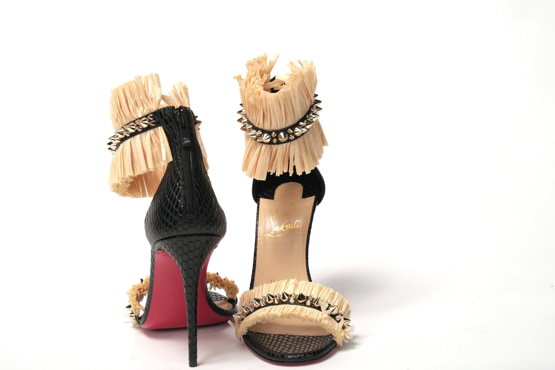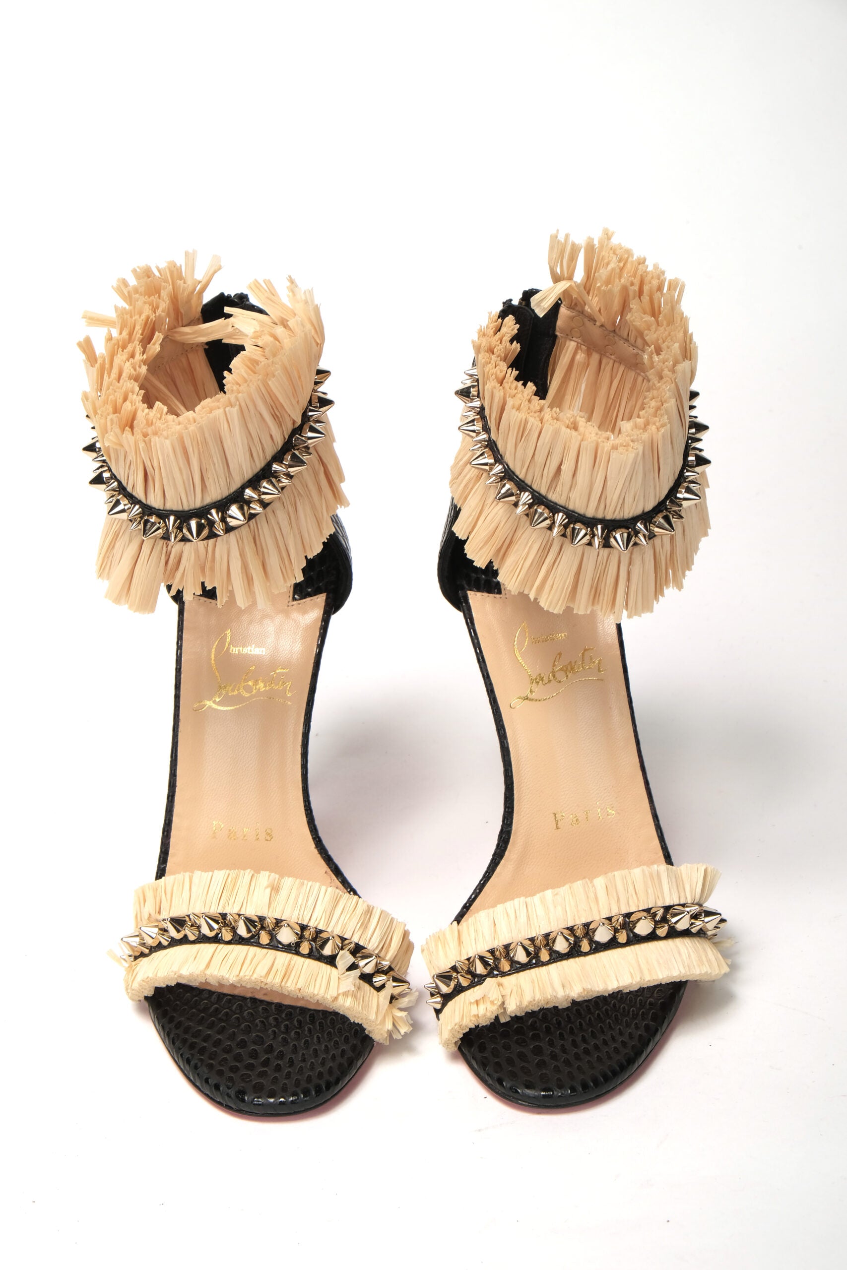 Christian Louboutin Black/Savane Black/Natural Poupedou 100 Calf Heel