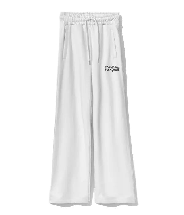 Comme des fuckdown, white sweatpants, elasticated waist, logo on the front