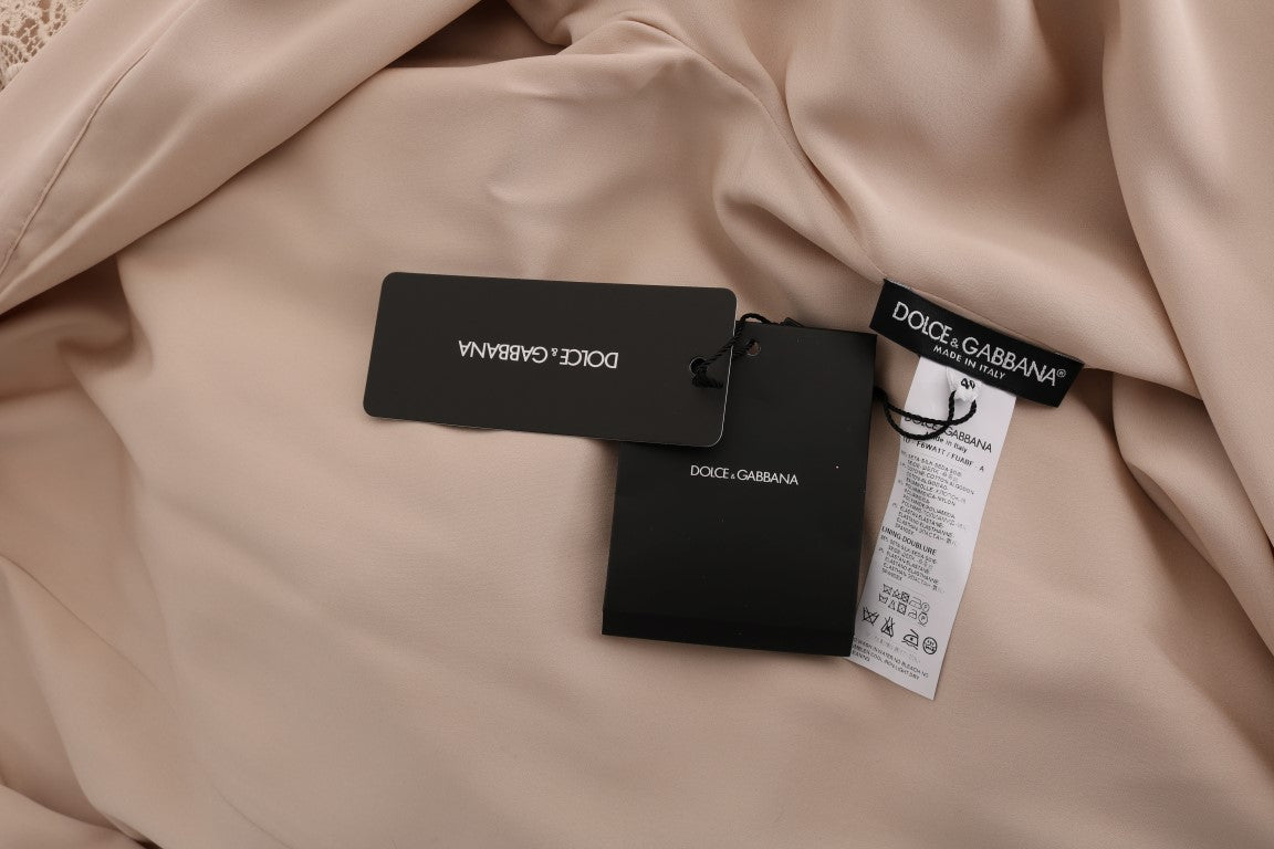 Dolce & Gabbana Beige Floral Applique Lace Kaftan Dress