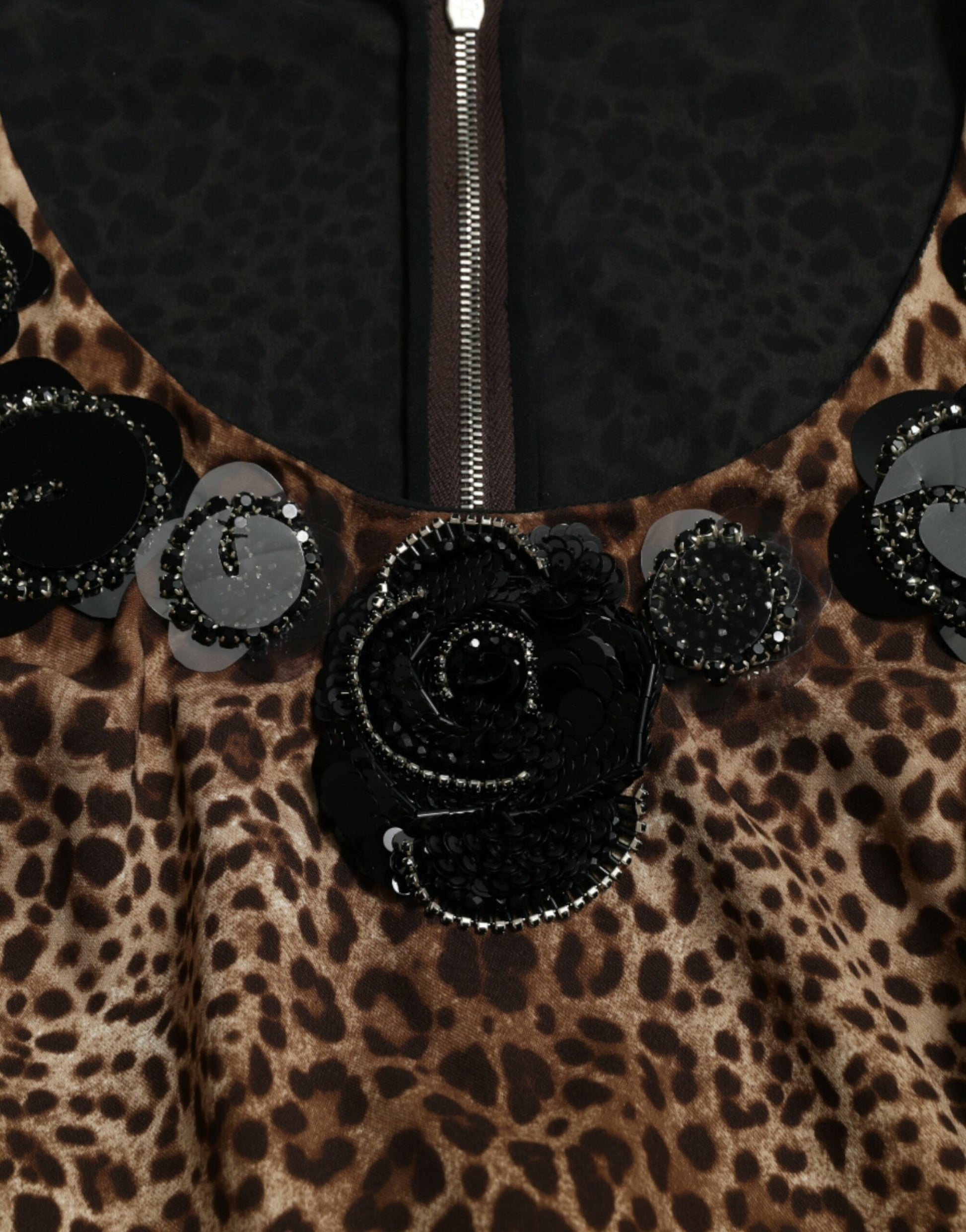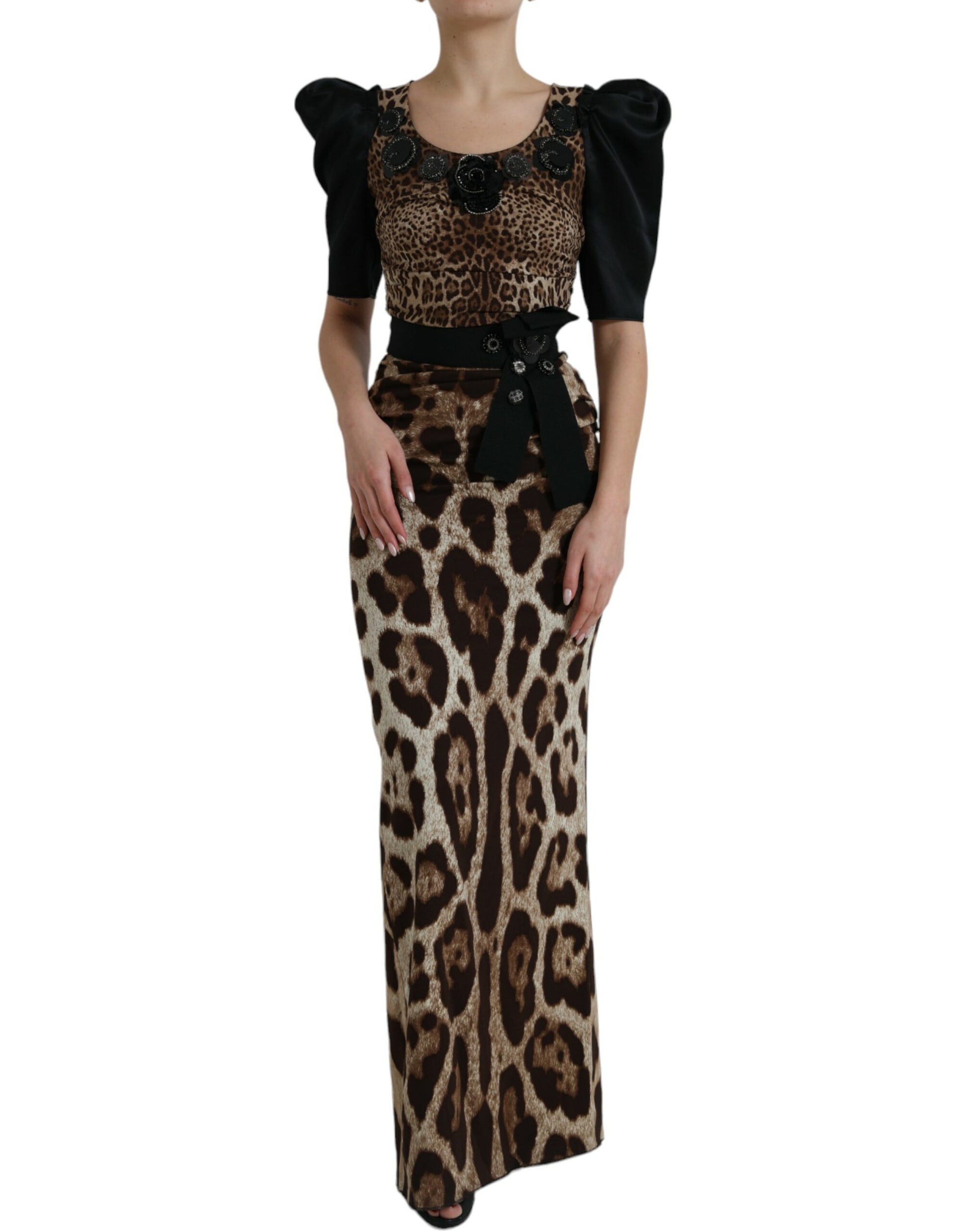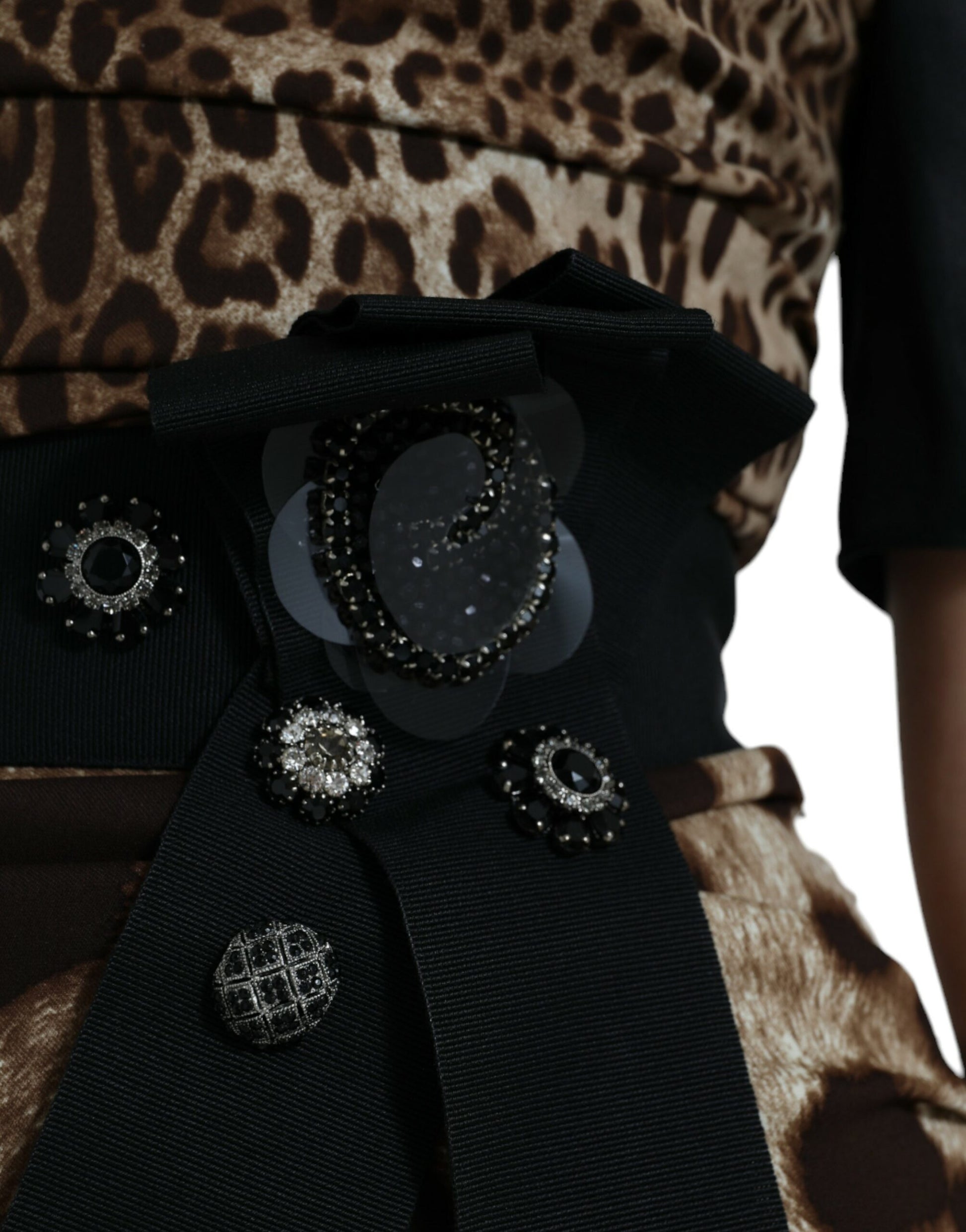Dolce & Gabbana Black Brown Leopard Embellished Sheath Gown Dress
