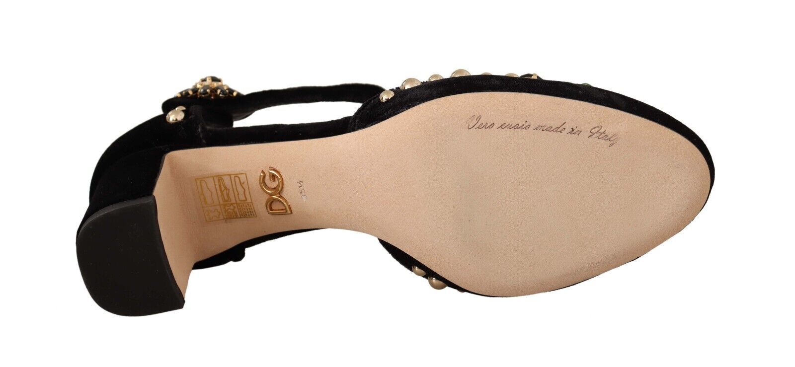 Dolce & Gabbana Black Embellished Ankle Strap Heels Sandals Shoes