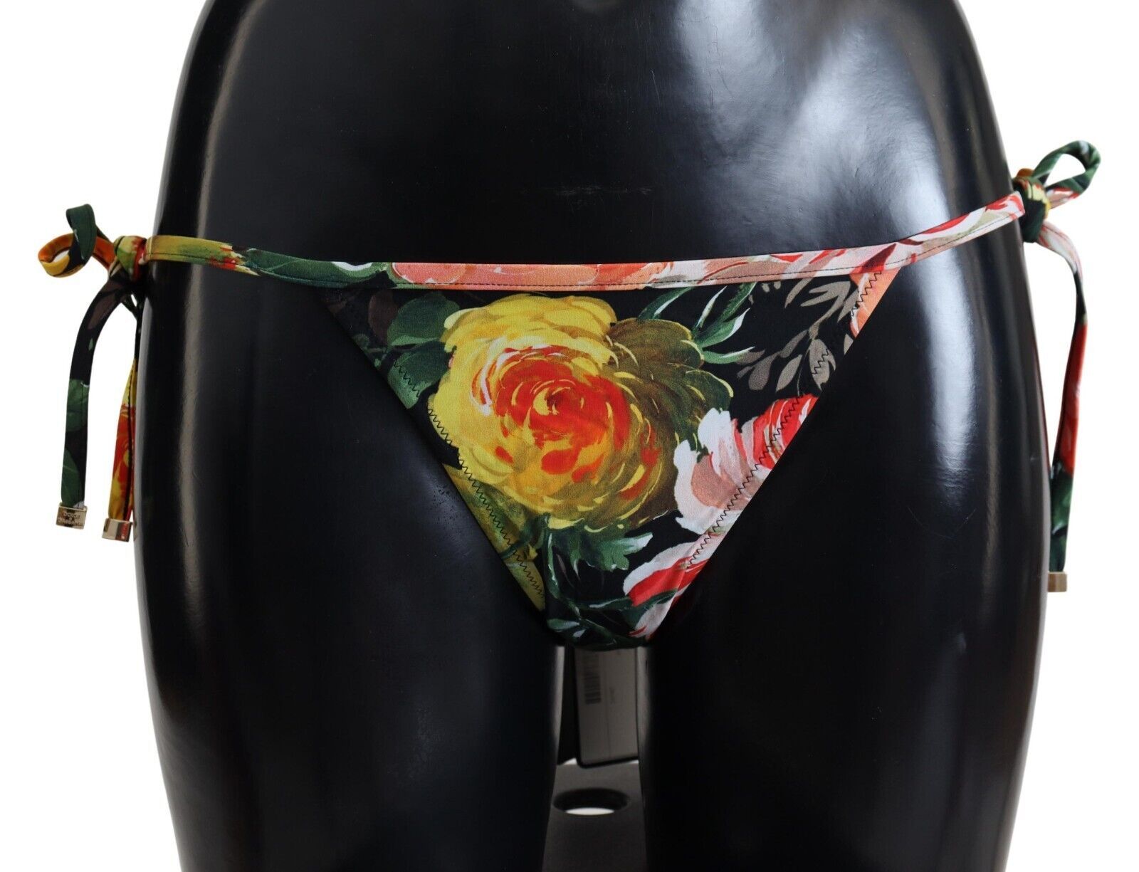 Dolce & Gabbana Black Floral Beachwear Swimsuit Bottom Bikini