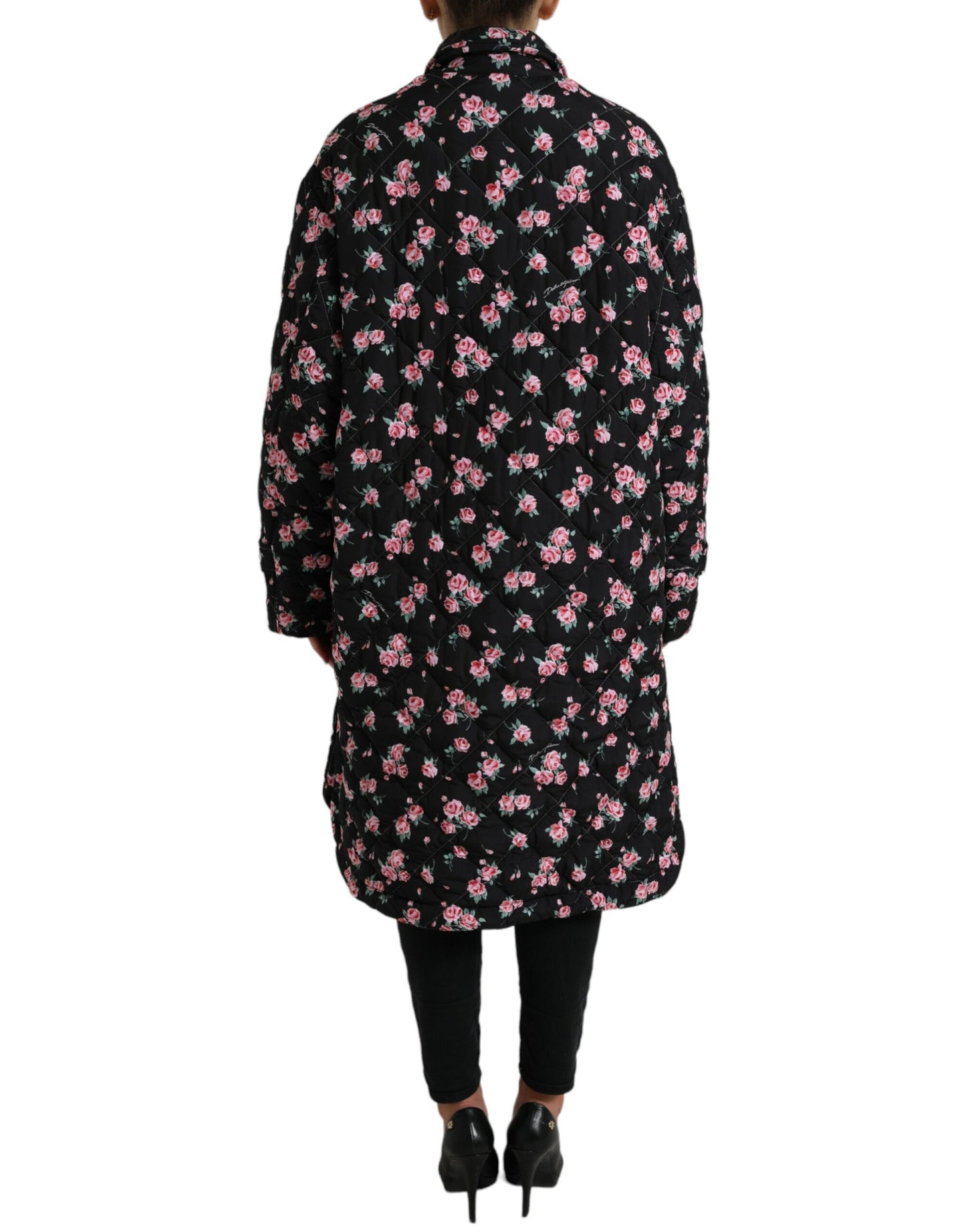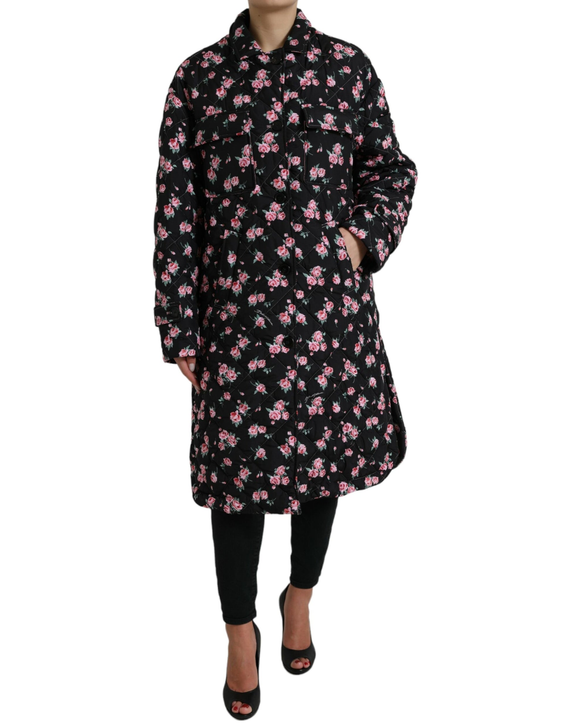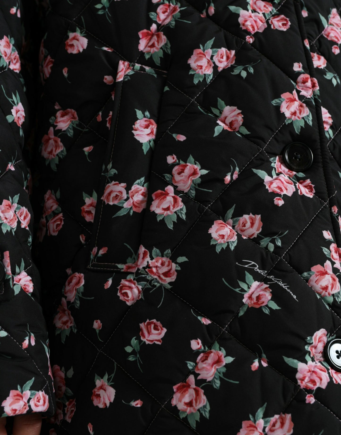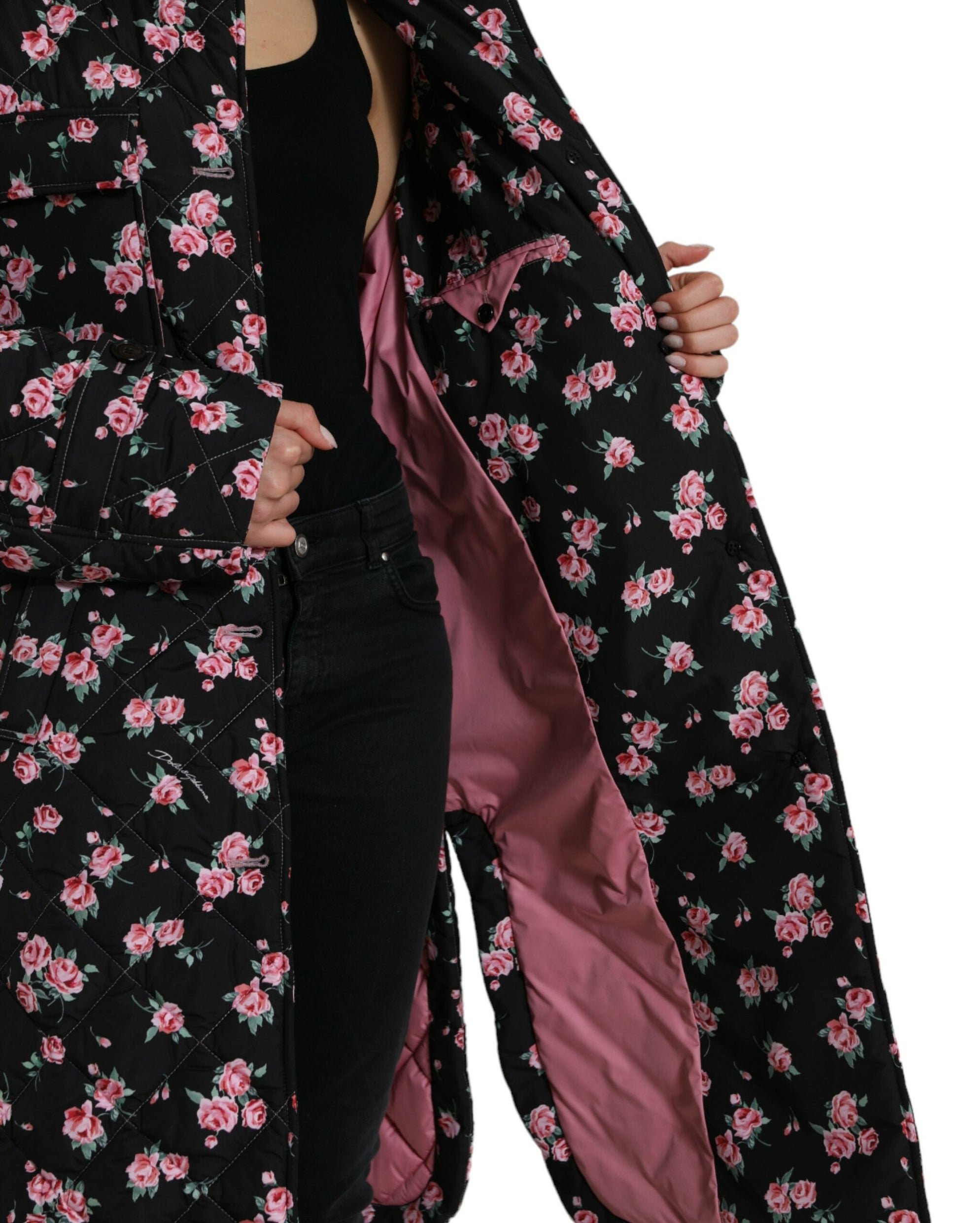 Dolce & Gabbana Black Floral Collared Trench Coat Jacket