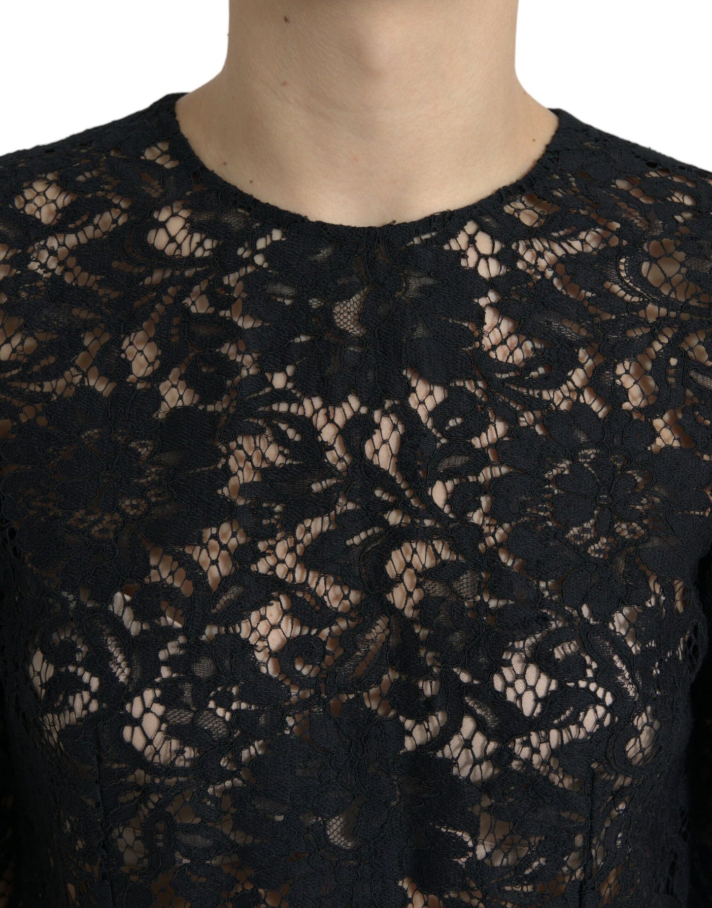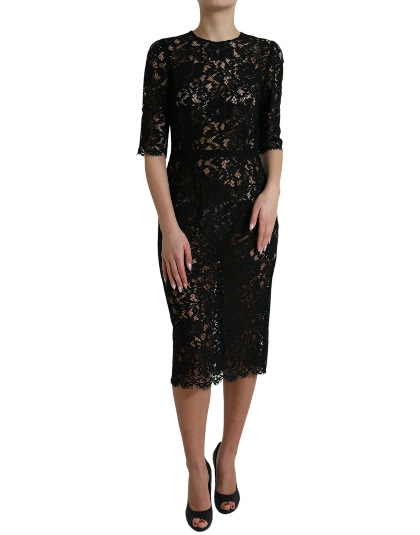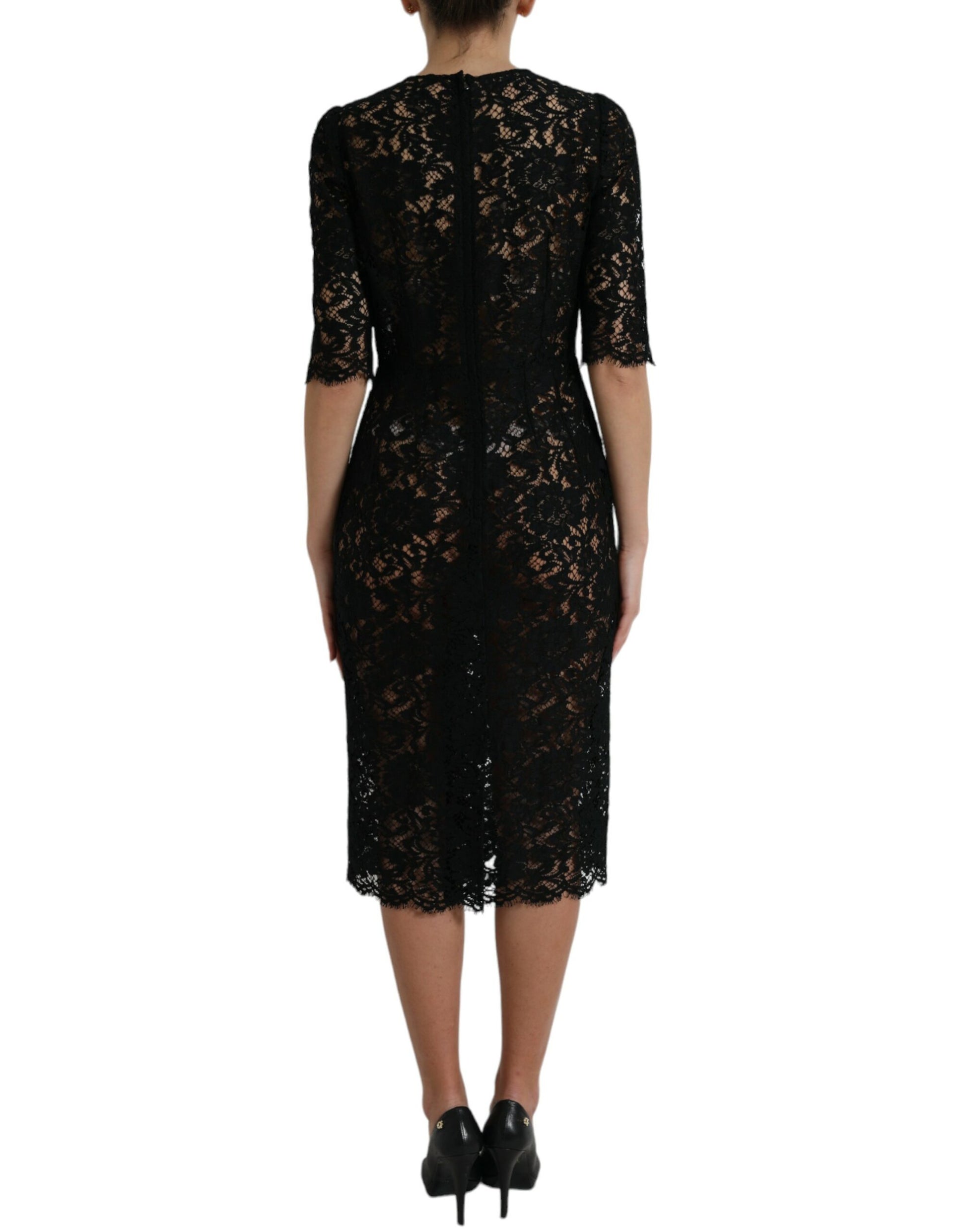 Dolce & Gabbana Black Floral Lace Viscose Sheath Midi Dress