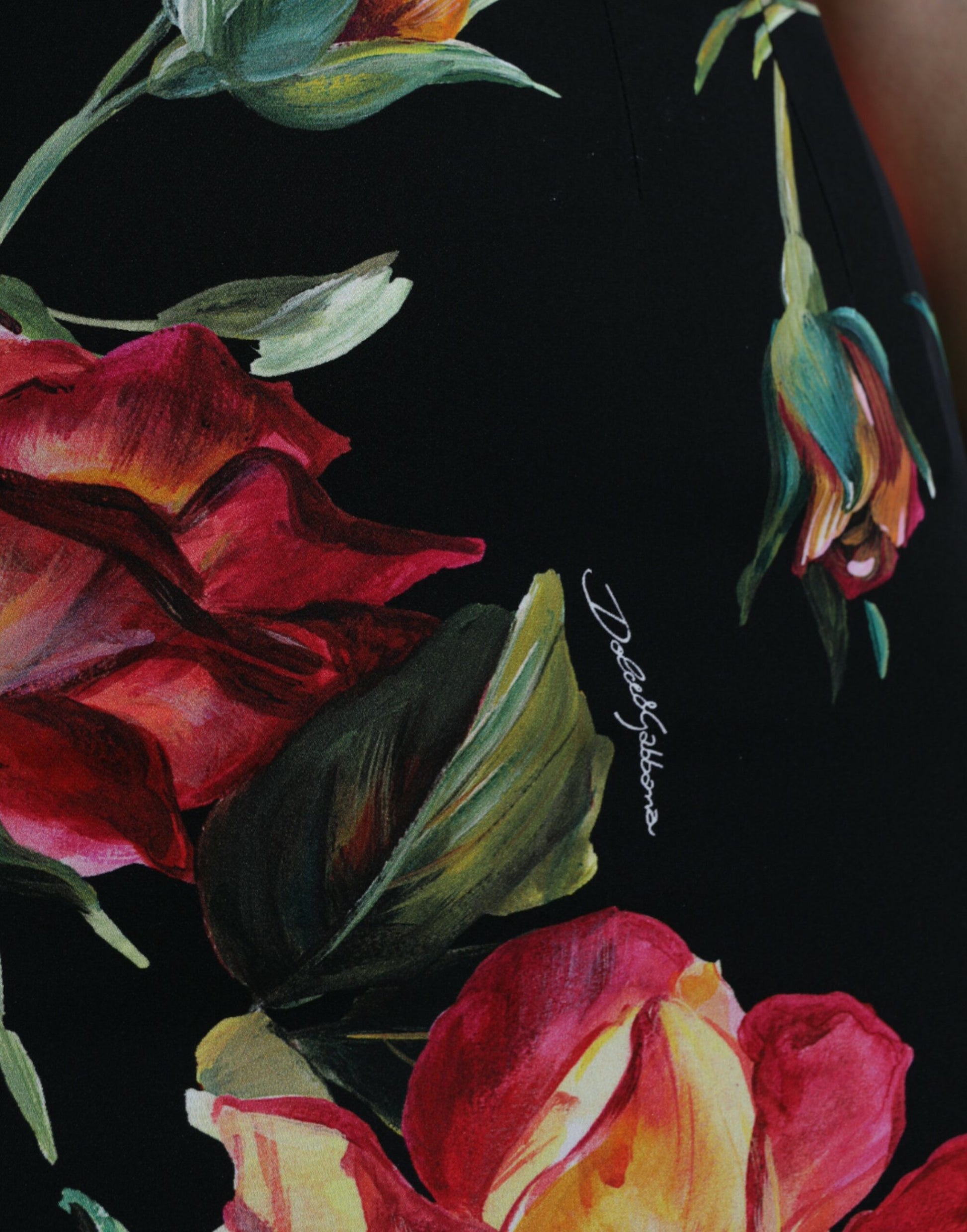Dolce & Gabbana Black Floral Print Silk Sheath Midi Dress