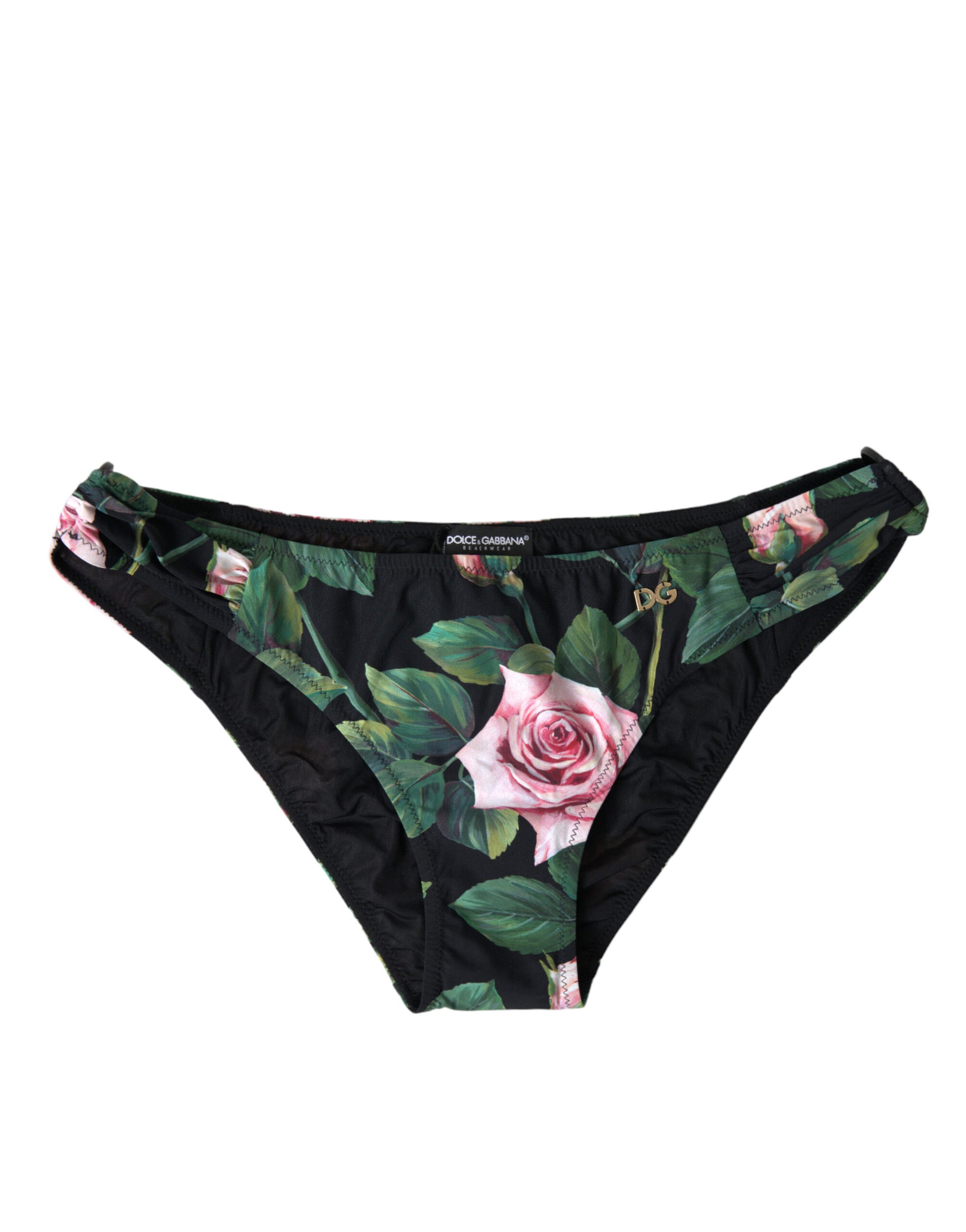 Dolce & Gabbana Black Floral Swimwear Bottom Beachwear Bikini