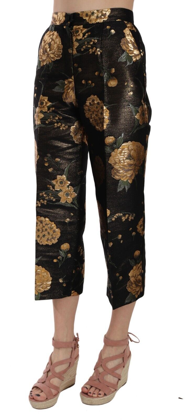 Dolce & Gabbana Black Gold Floral Jacquard Cropped Pants