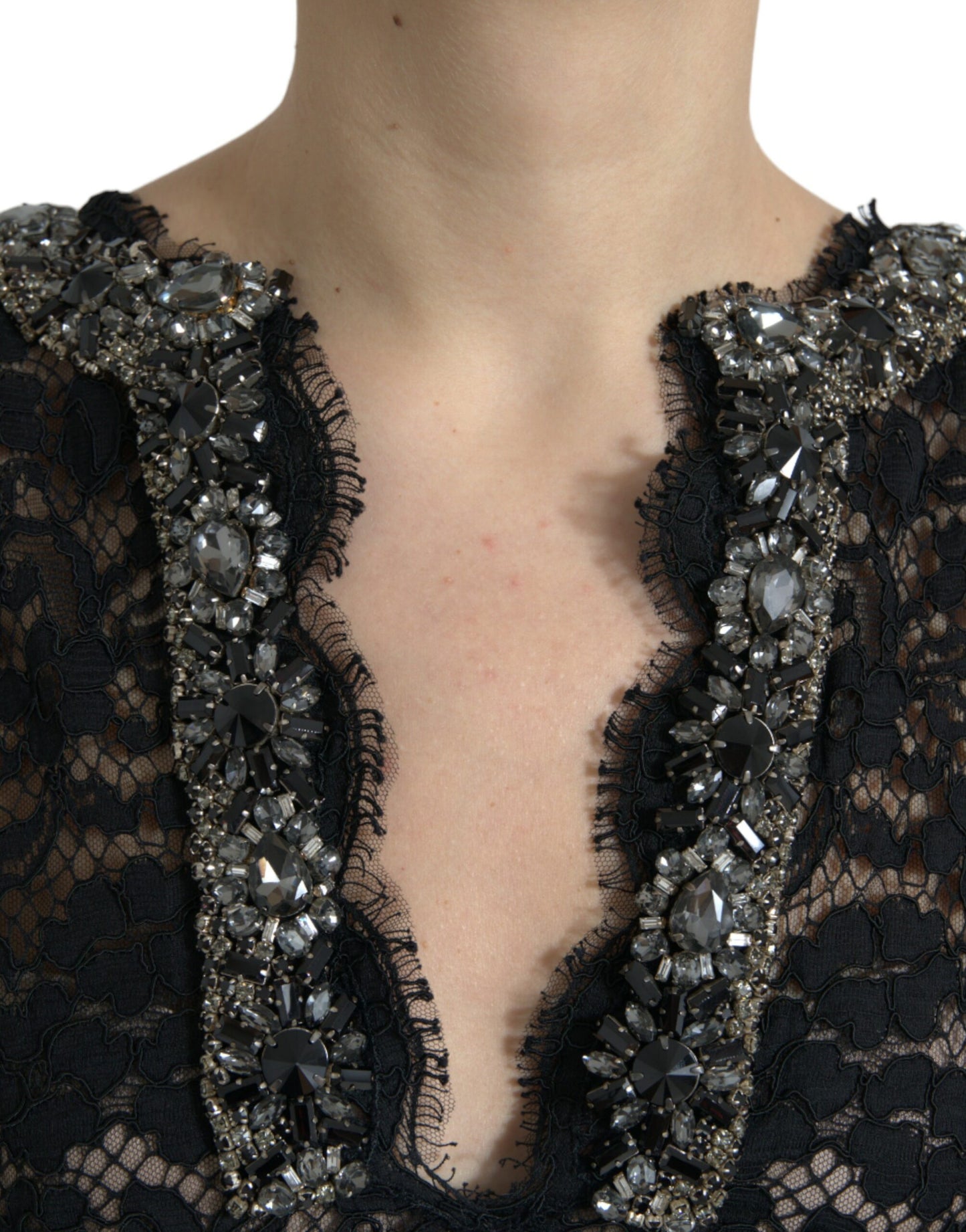 Dolce & Gabbana Black Lace Crystal Embellished Shift Dress