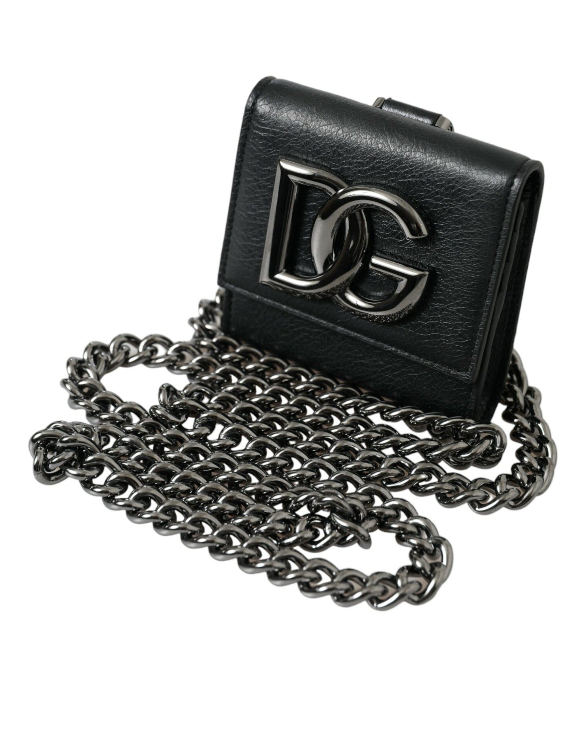 Dolce & Gabbana Black Lamb Leather Logo Card Holder Chain Strap Bags