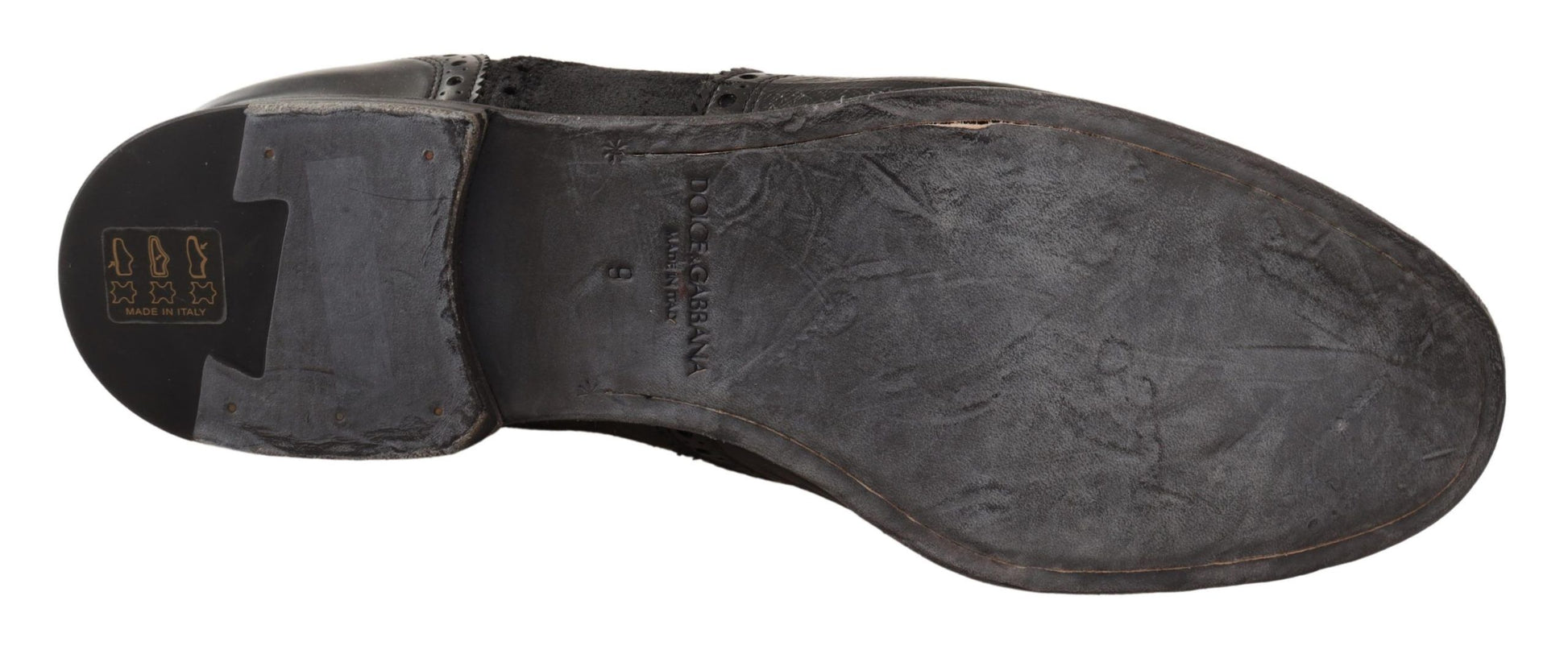 Dolce & Gabbana Black Leather Brogue Wing Tip Men Formal Shoes
