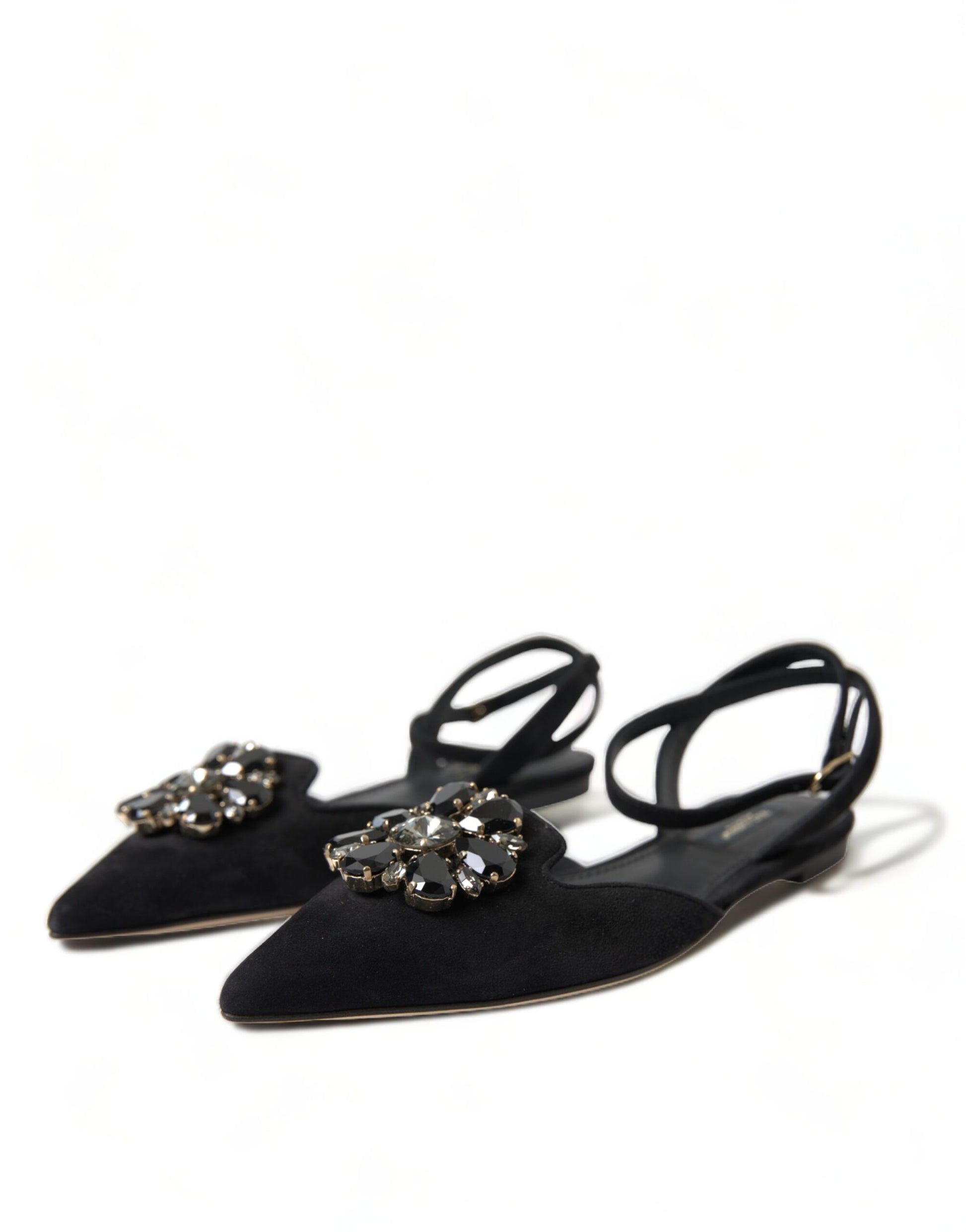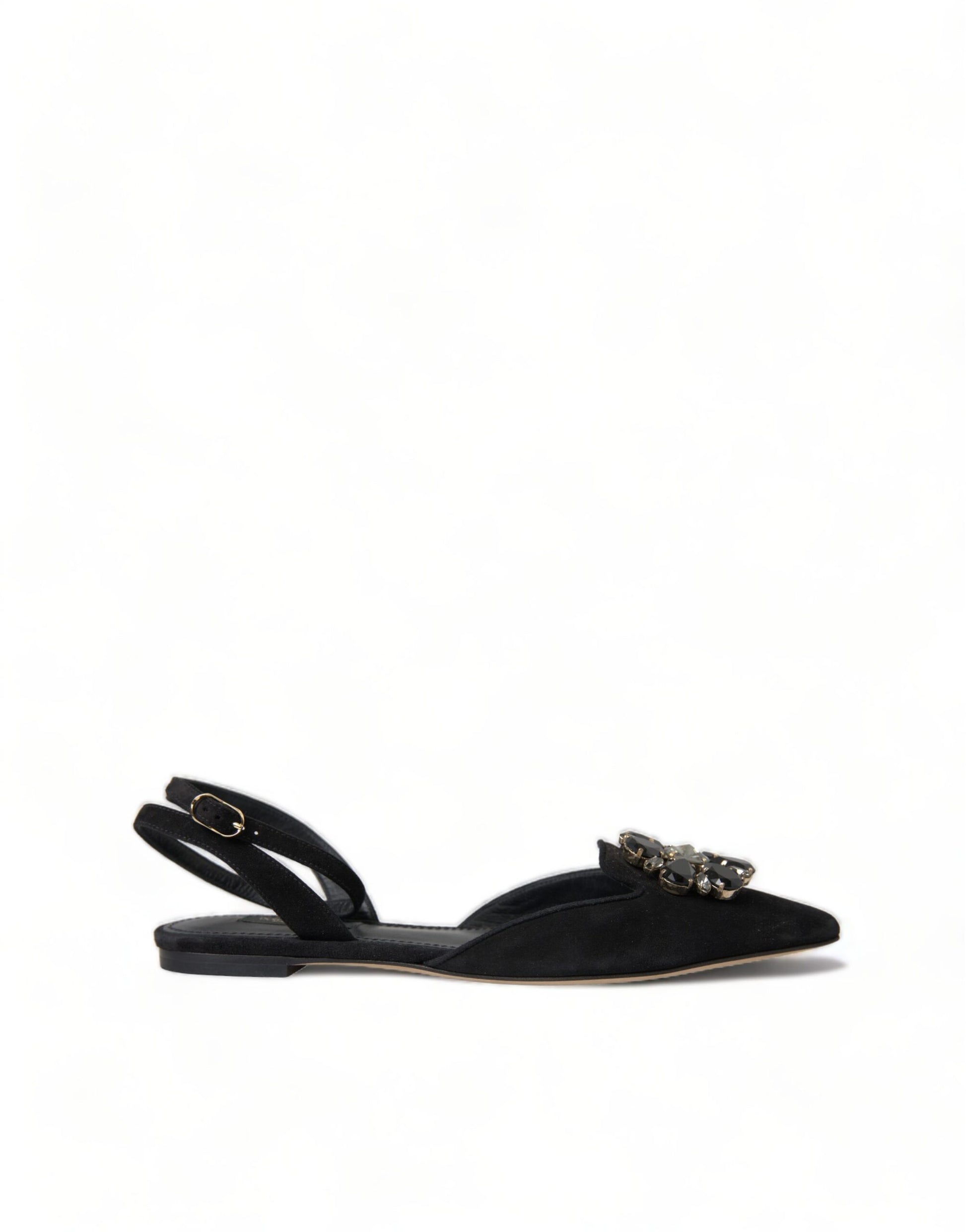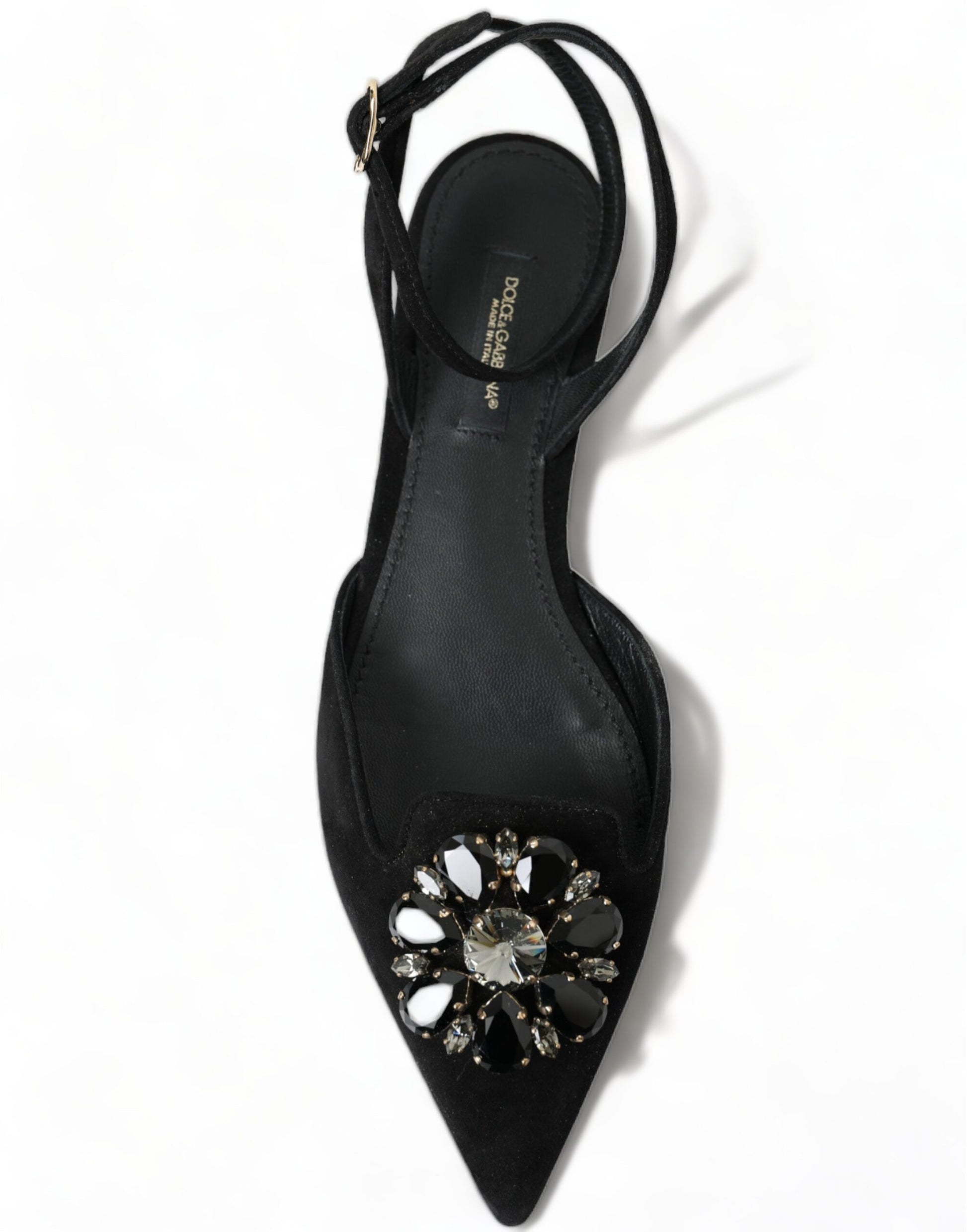 Dolce & Gabbana Black Leather Crystal Slingback Flats Shoes