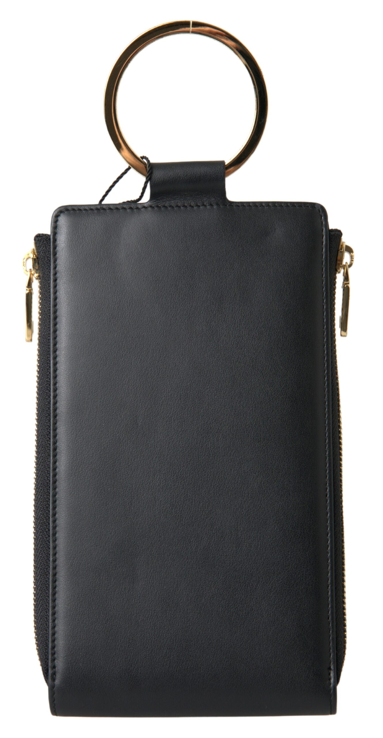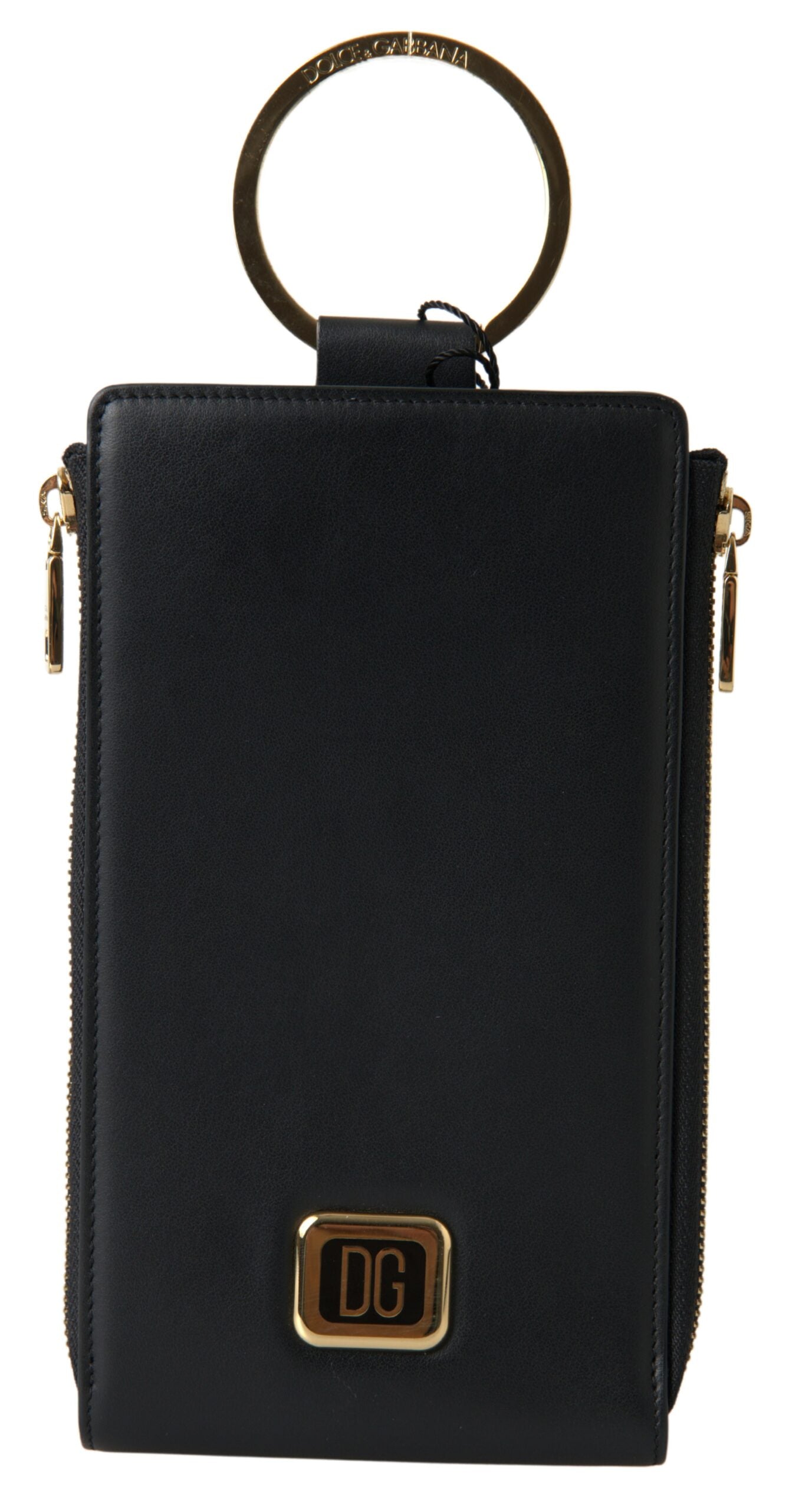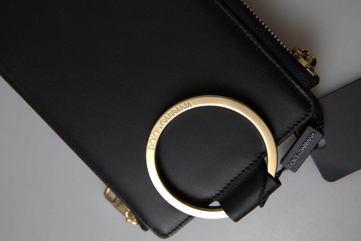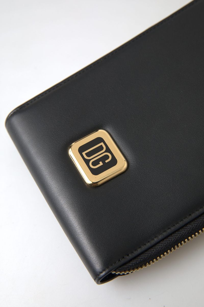 Dolce & Gabbana Black Leather DG Logo Gold Zip Card Holder Men Wallet