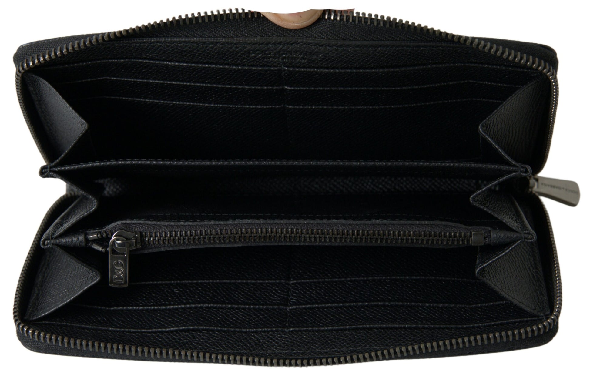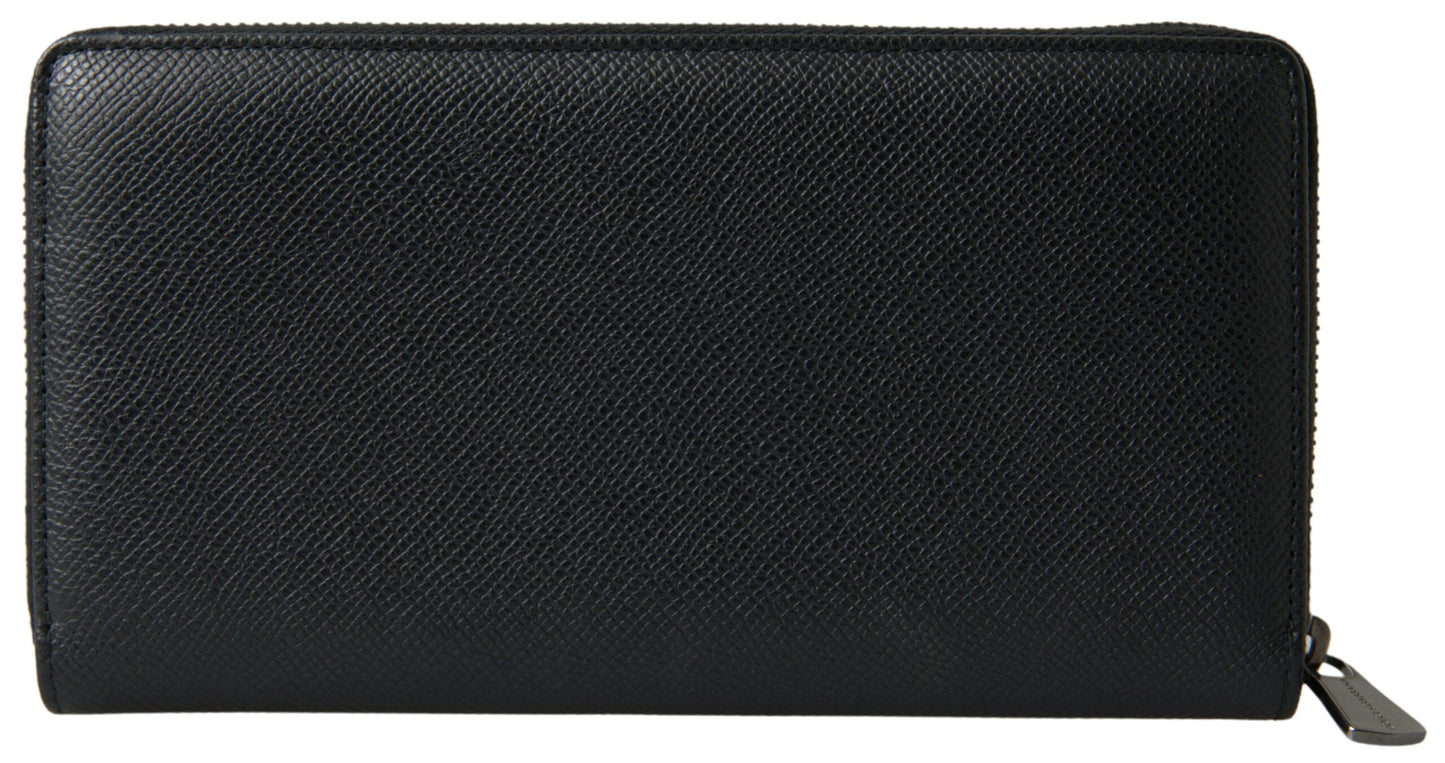 Dolce & Gabbana Black Leather Zip Around Continental Men Wallet