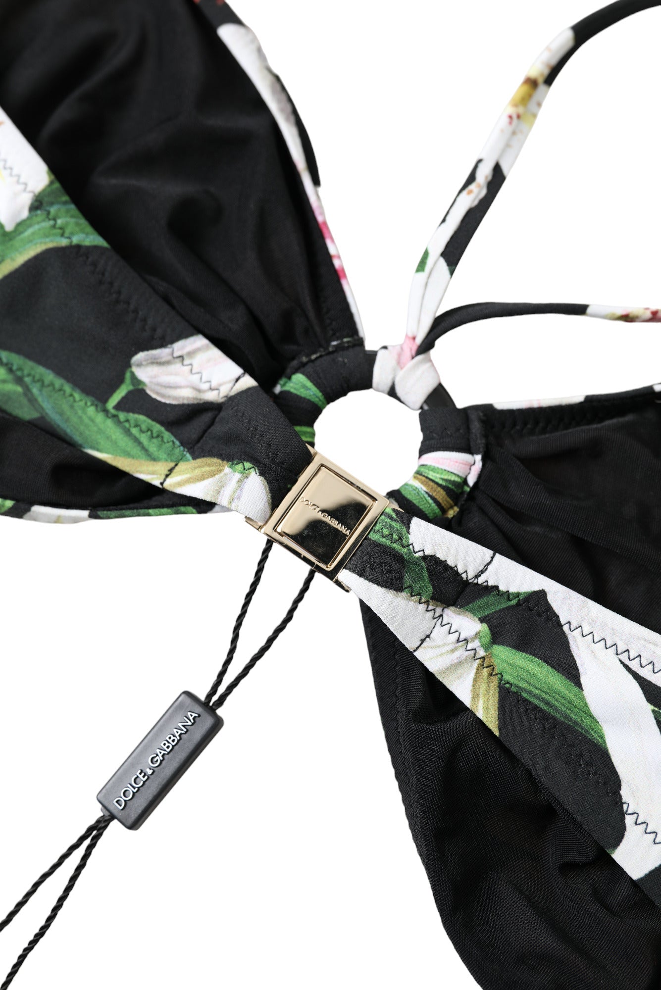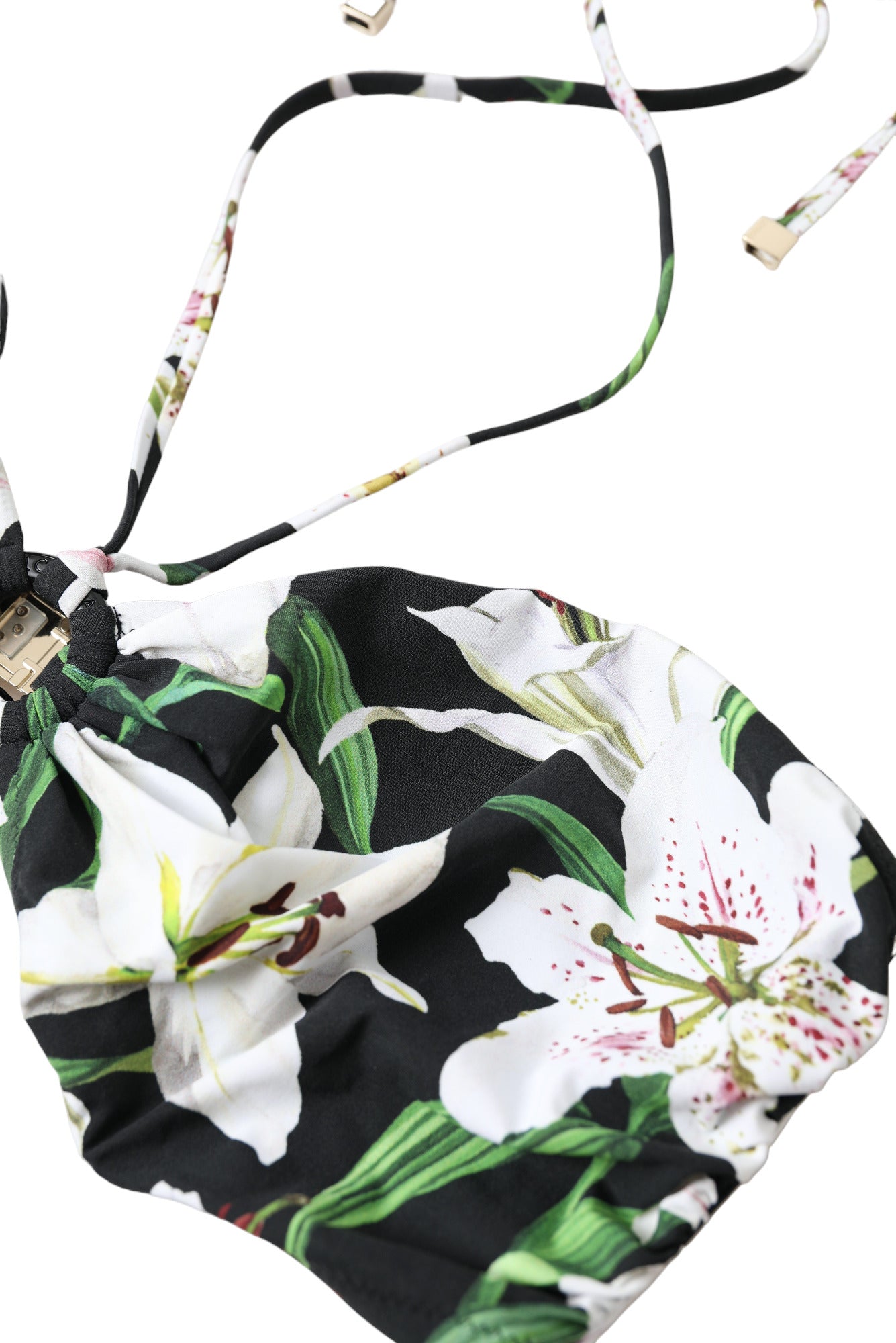 Dolce & Gabbana Black Lily Halter Swimwear Top Beachwear Bikini