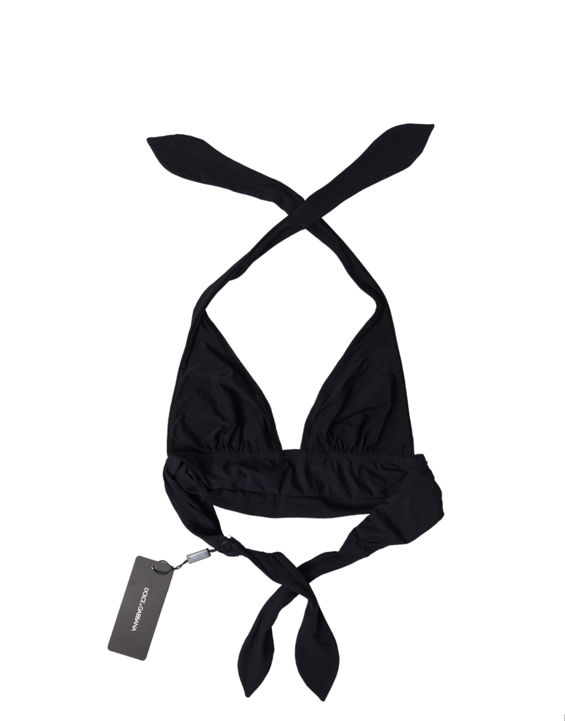 Dolce & Gabbana Black Nylon Stretch Swimwear Halter Top Bikini
