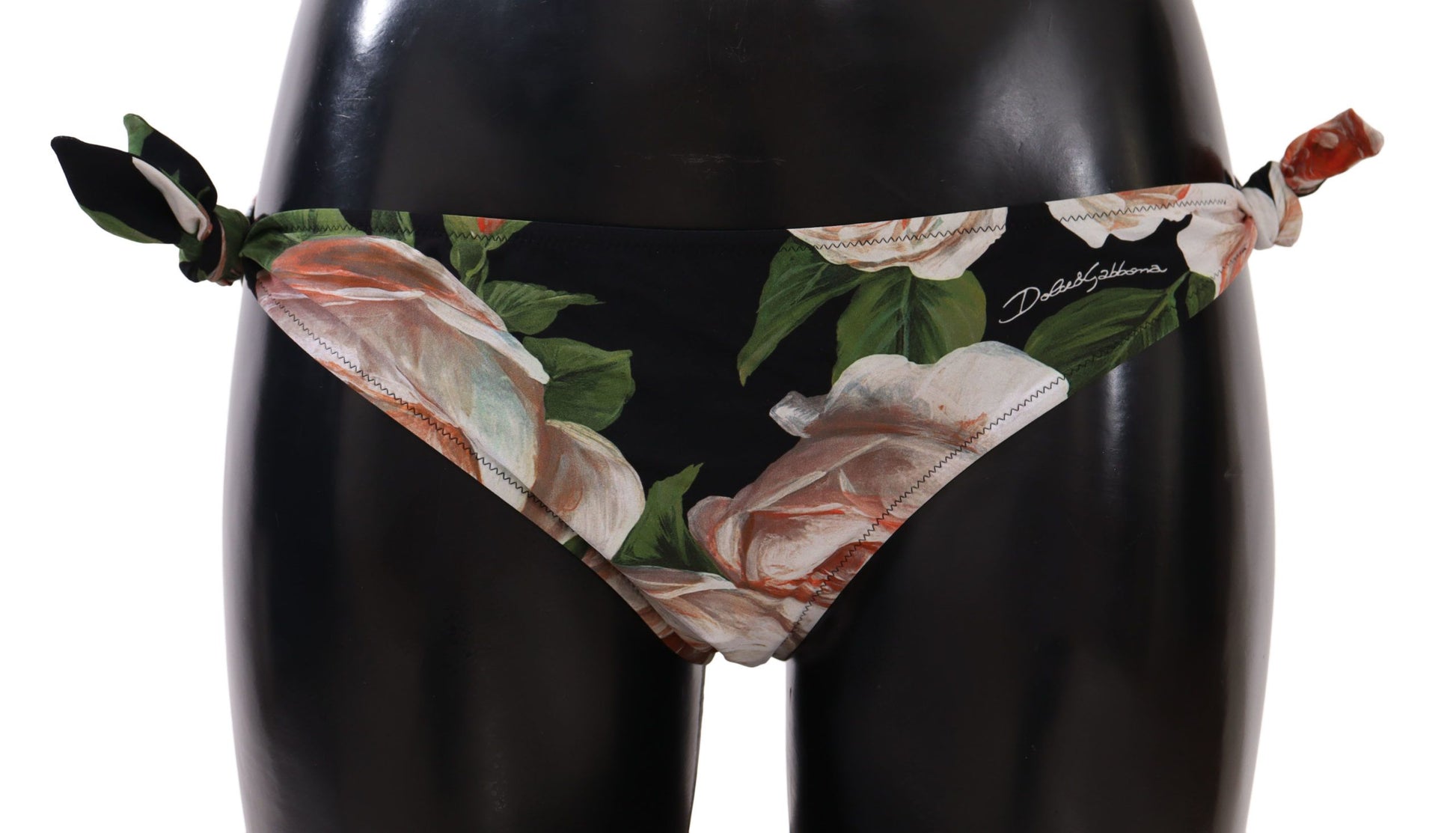 Dolce & Gabbana Black Roses Print Swimsuit Bikini Bottom Swimwear