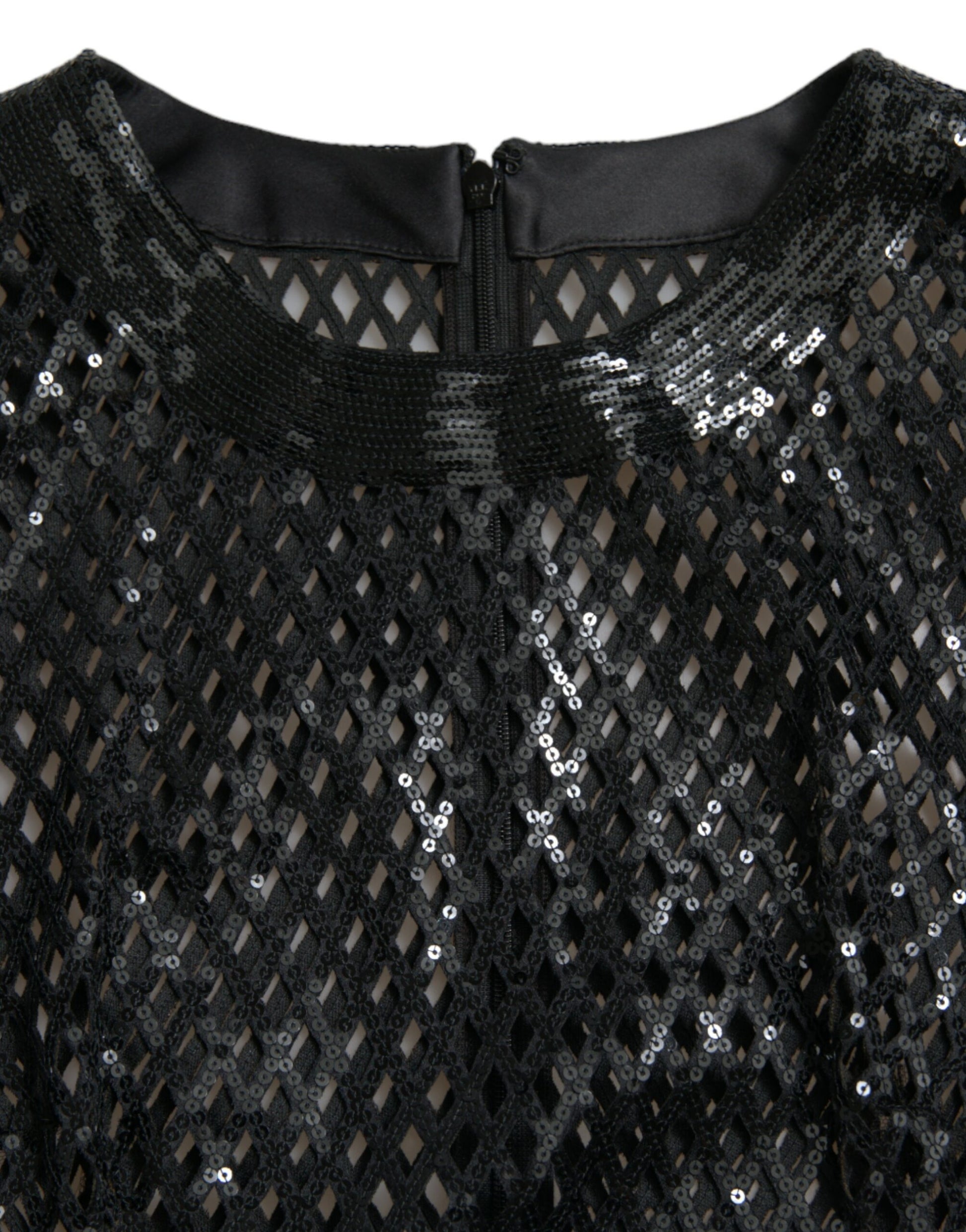 Dolce & Gabbana Black Sequined Sleeveless Mesh Layered Gown Dress