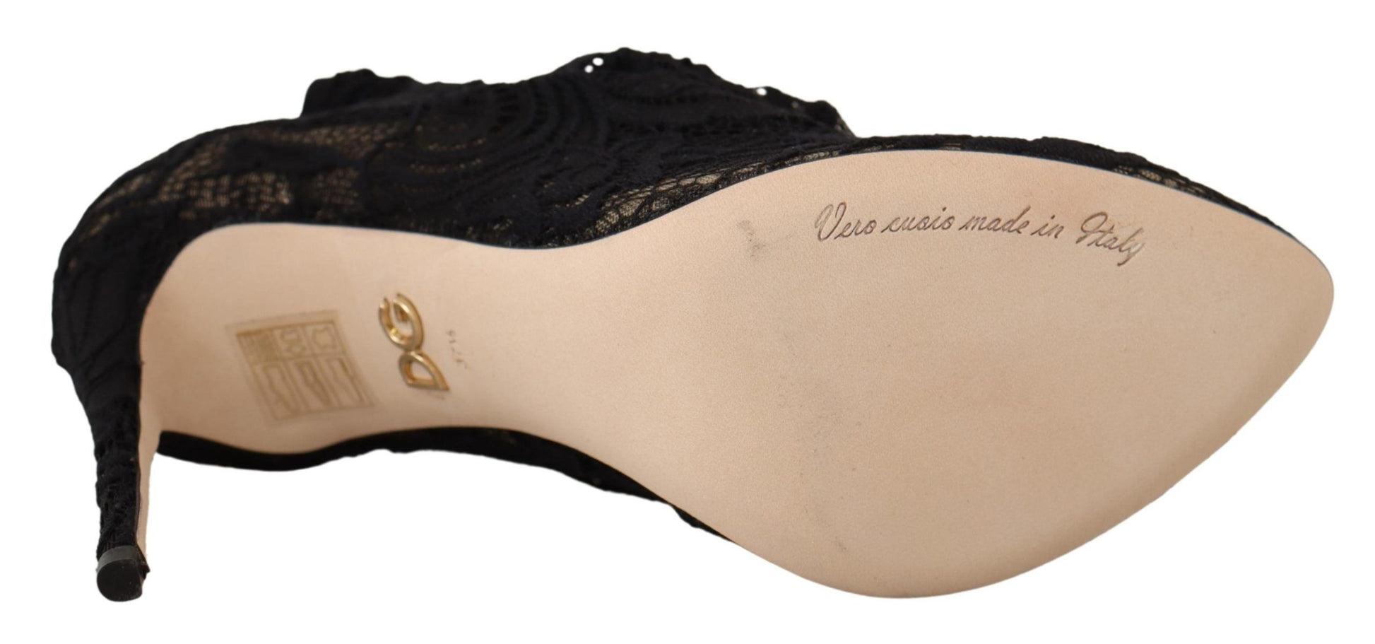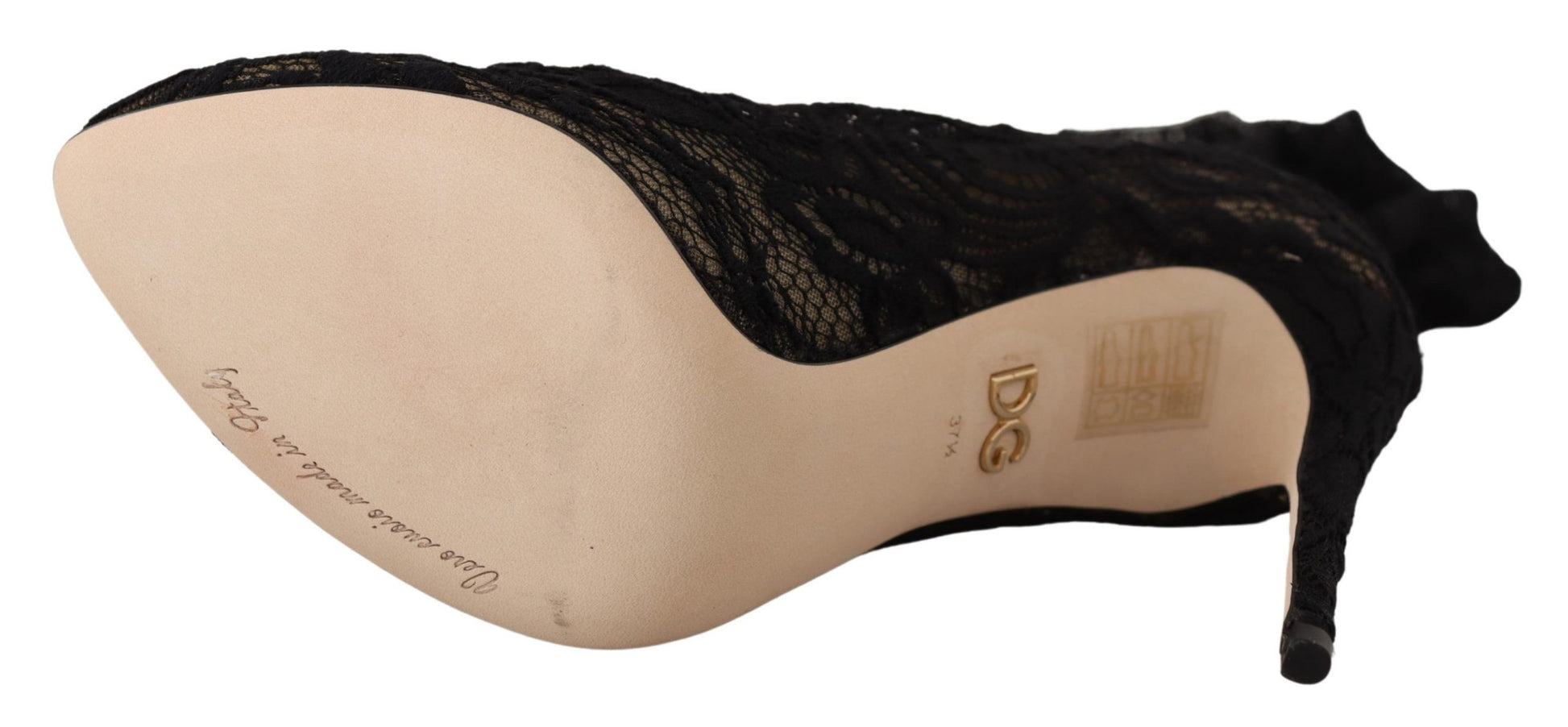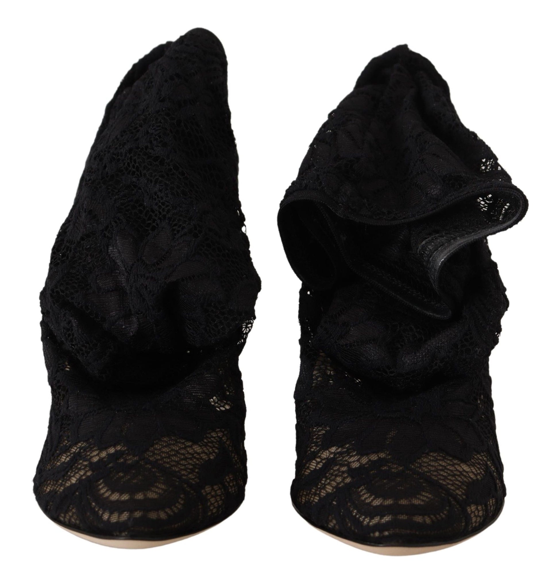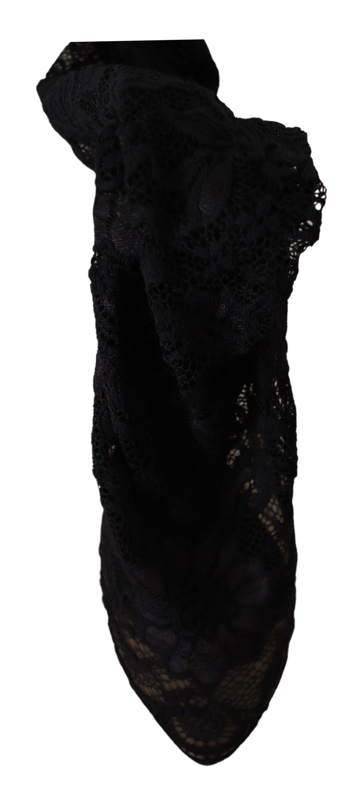 Dolce & Gabbana Black Stretch Socks Taormina Lace Boots