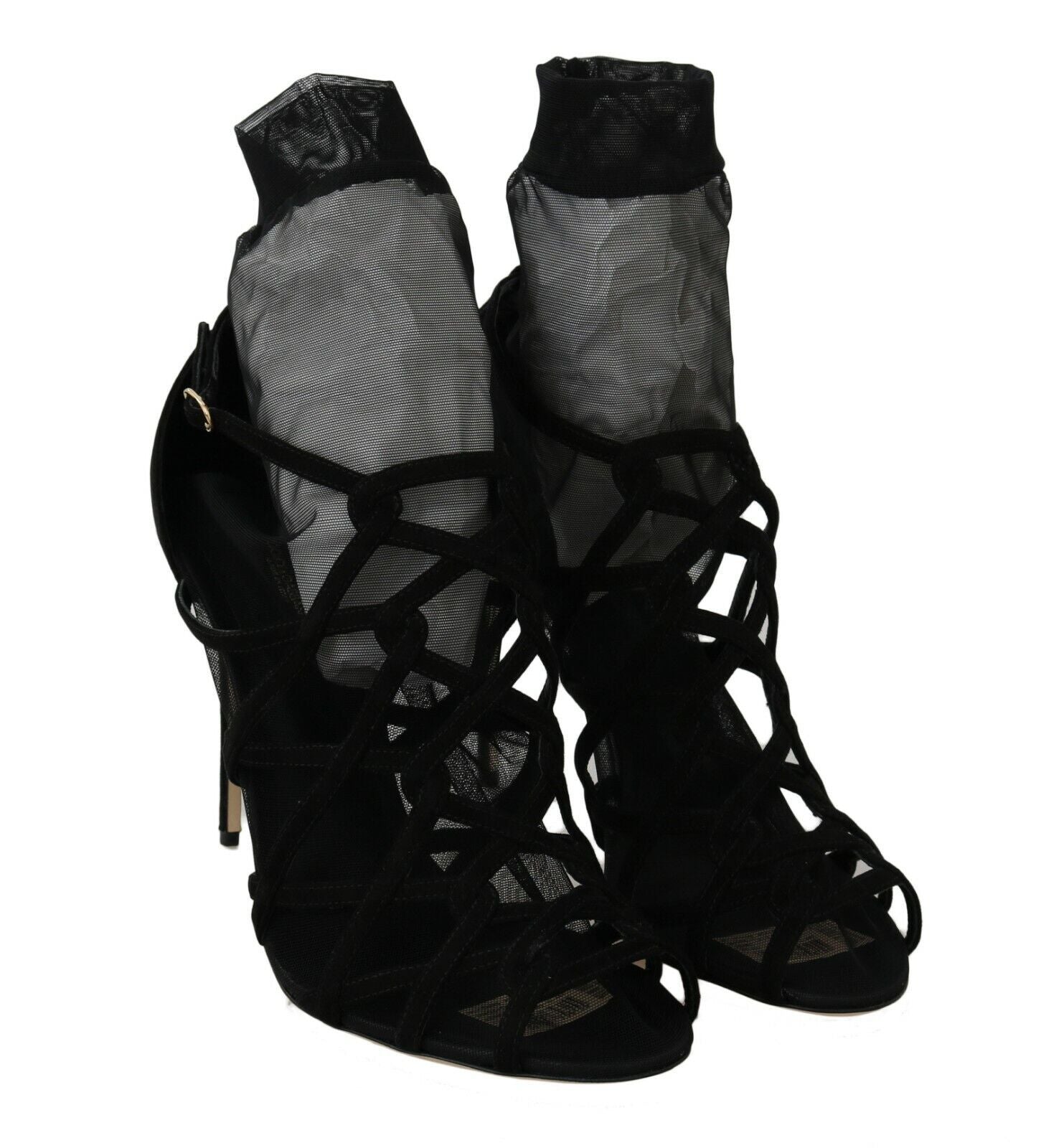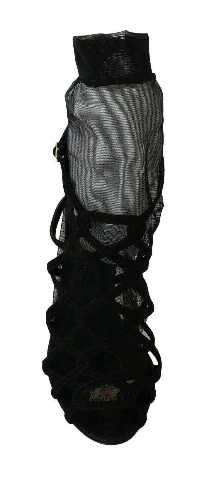 Dolce & Gabbana Black Suede Tulle Ankle Boots Sandal Shoes