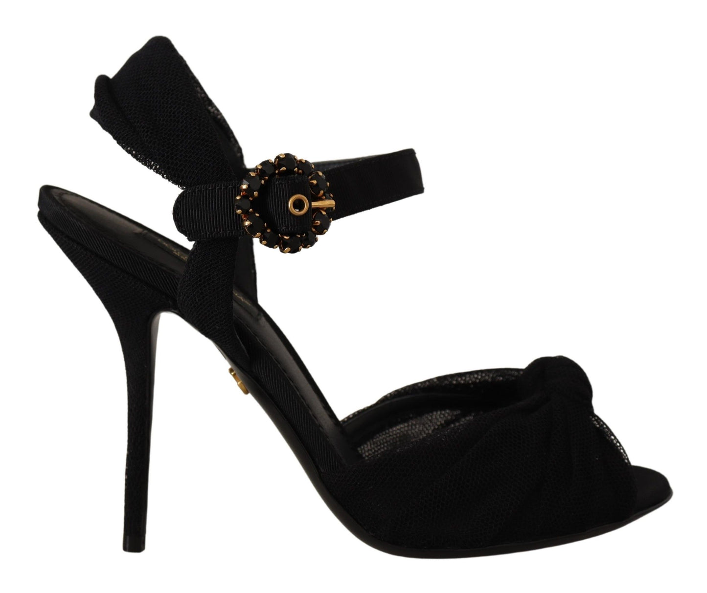Dolce & Gabbana Black Tulle Stretch Ankle Buckle Strap Shoes