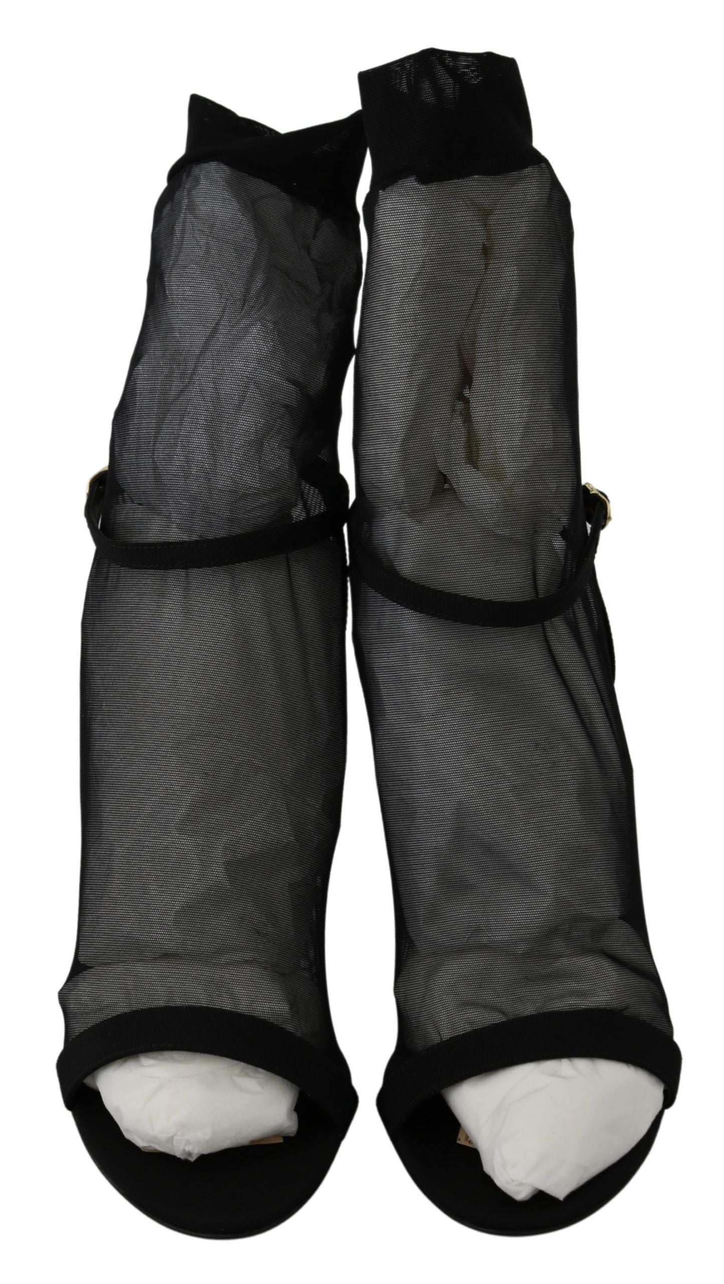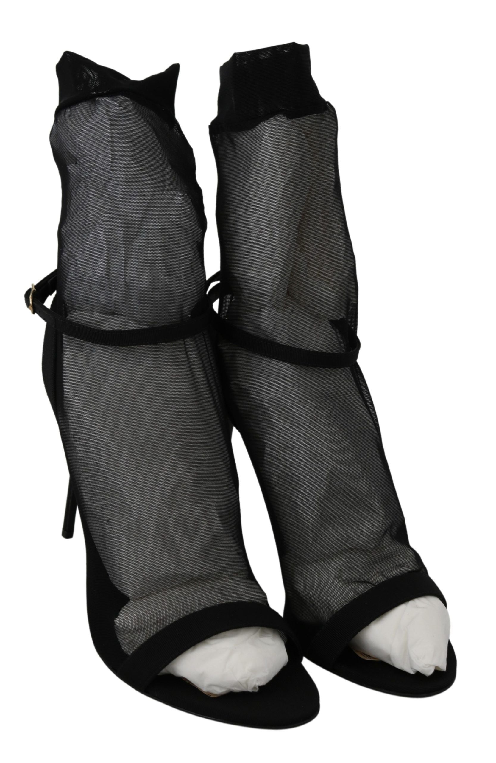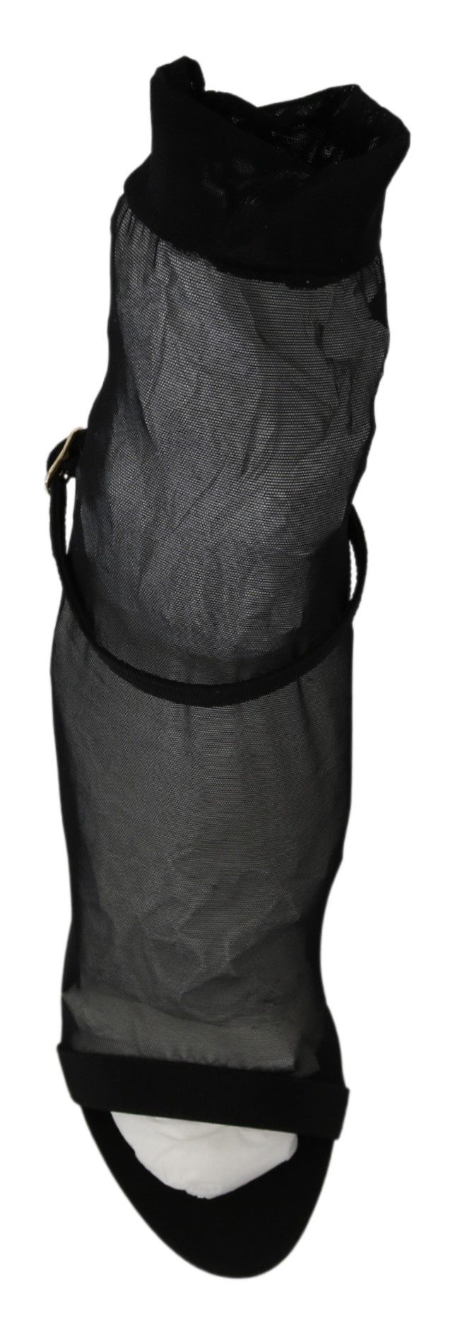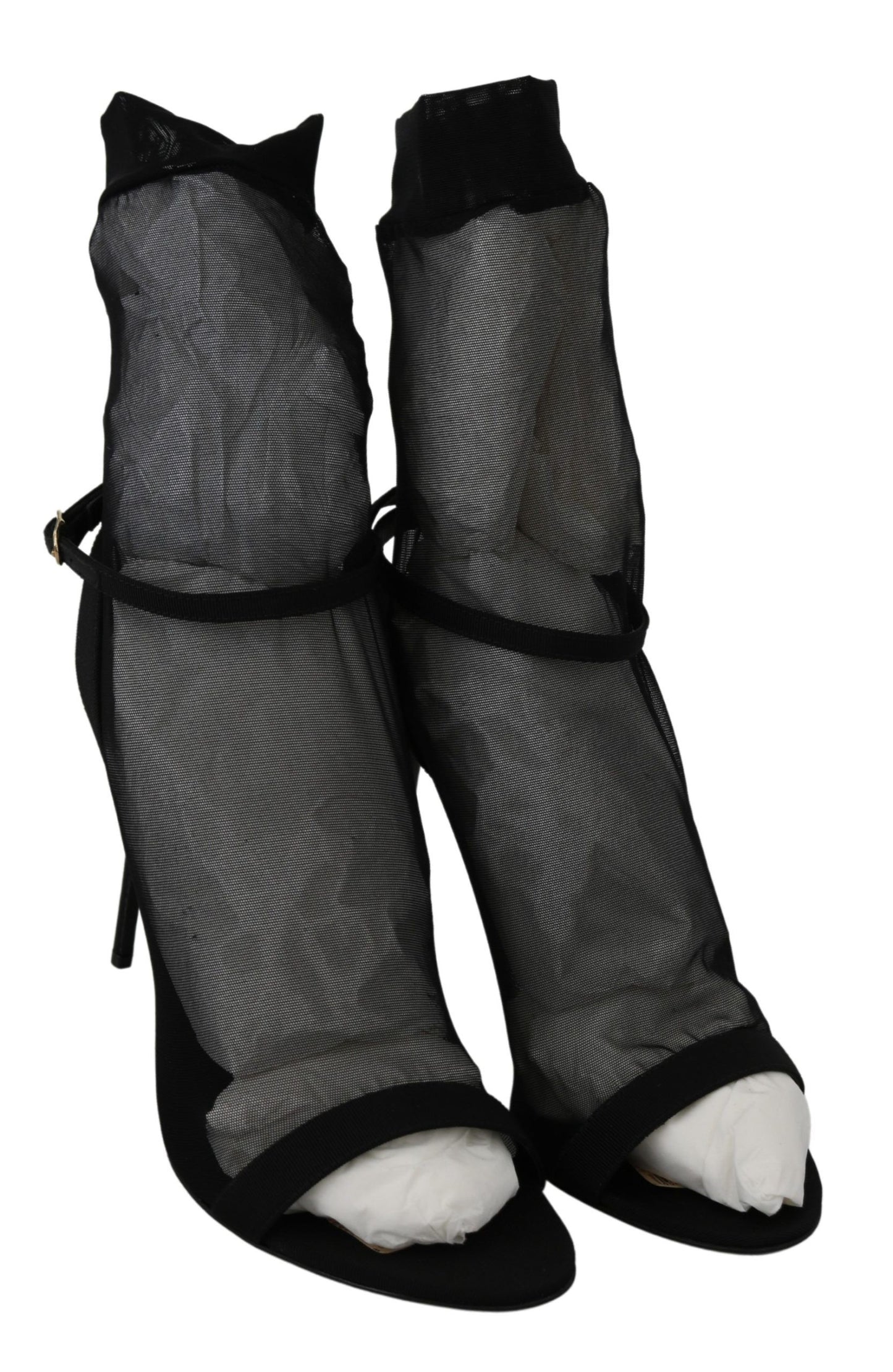 Dolce & Gabbana Black Tulle Stretch Stilettos Sandals Shoes