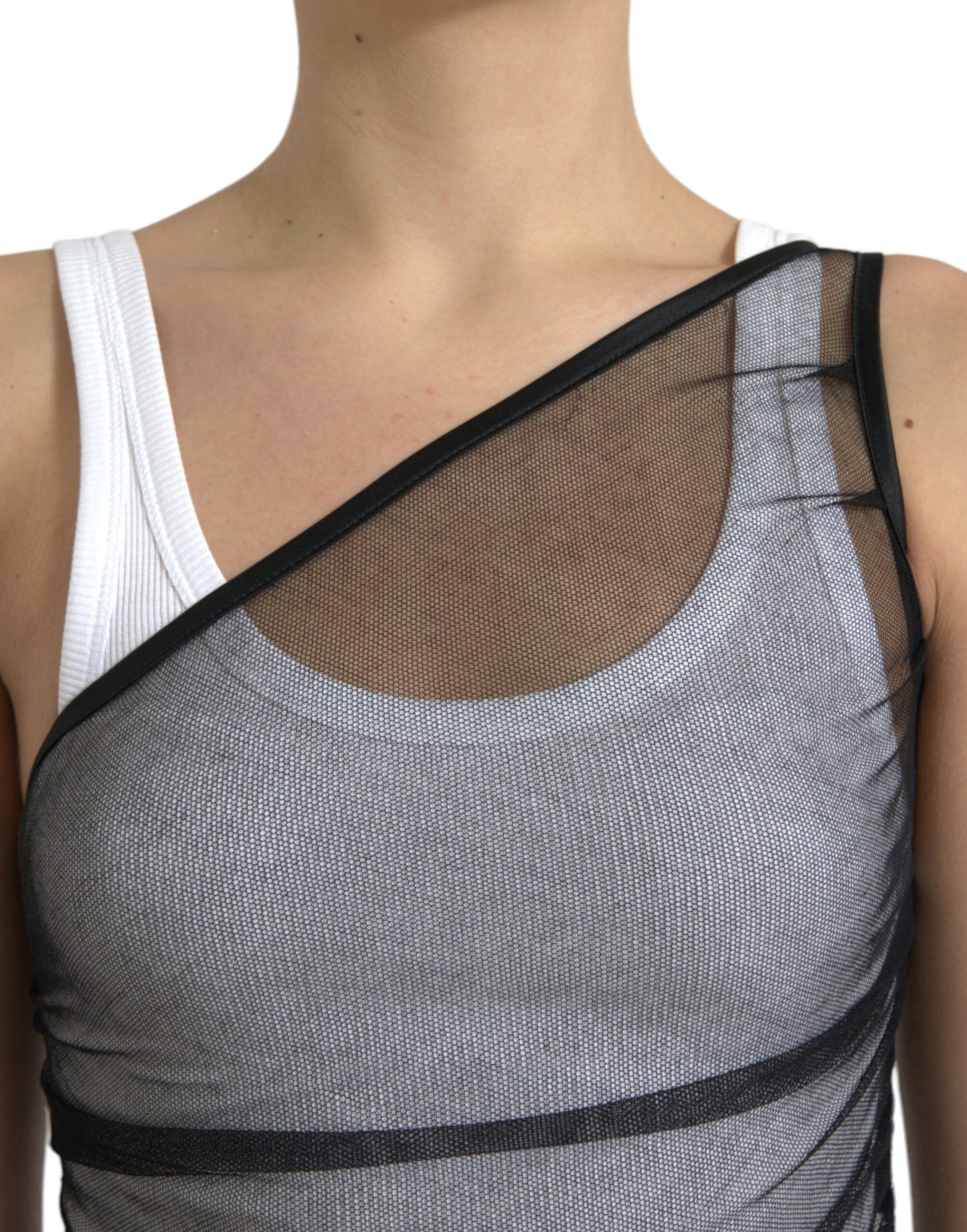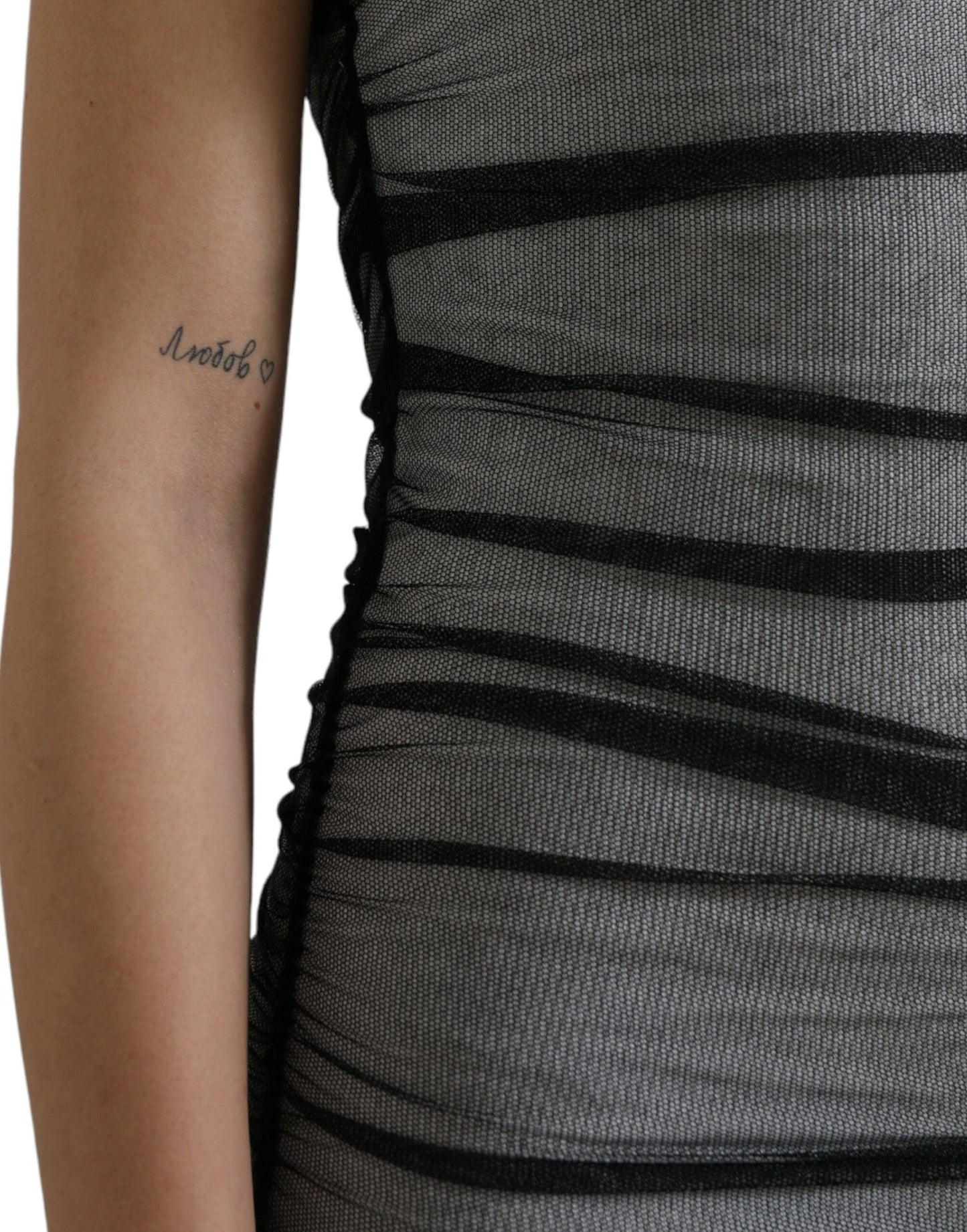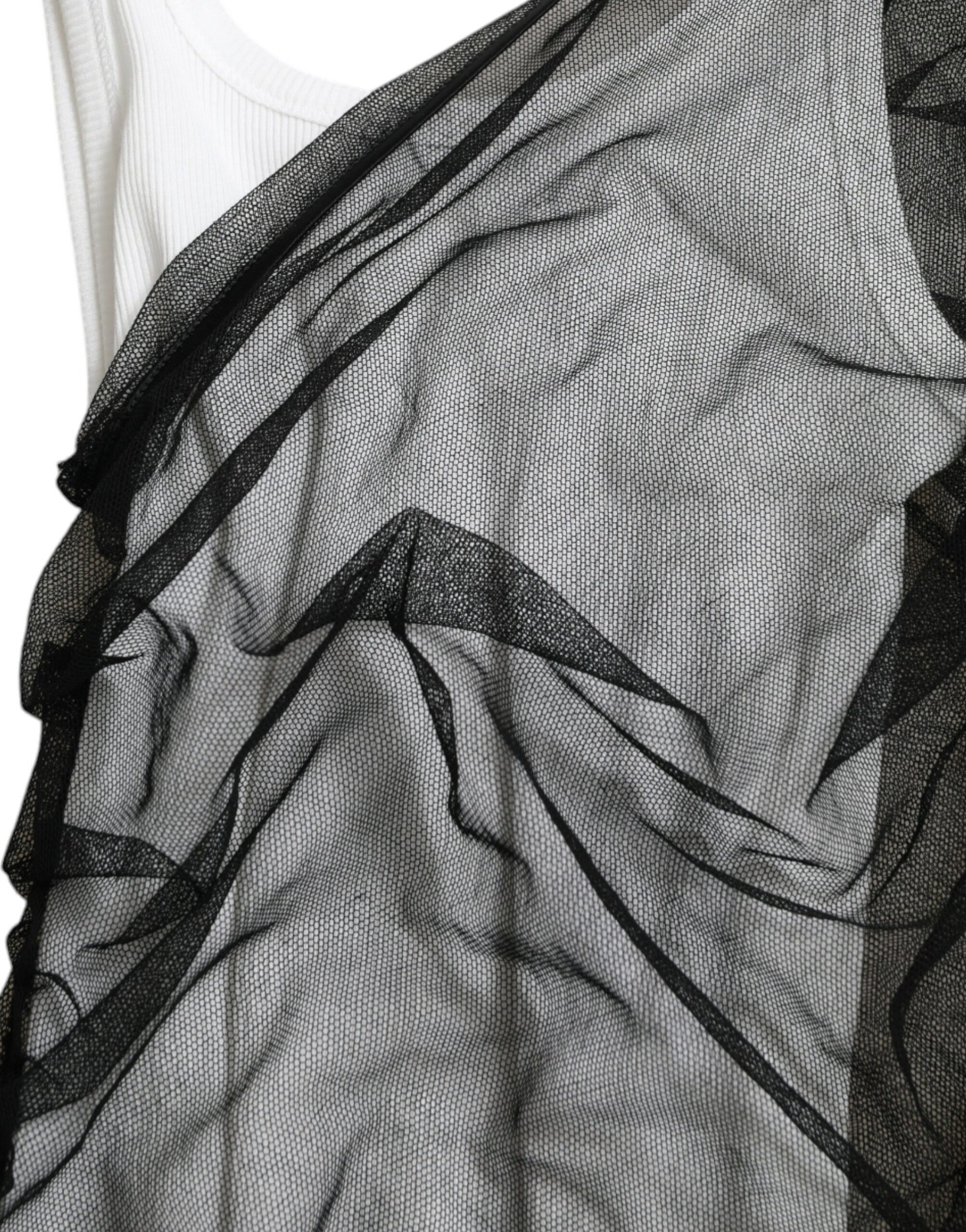 Dolce & Gabbana Black White Cotton Sheer Bodycon Midi Dress