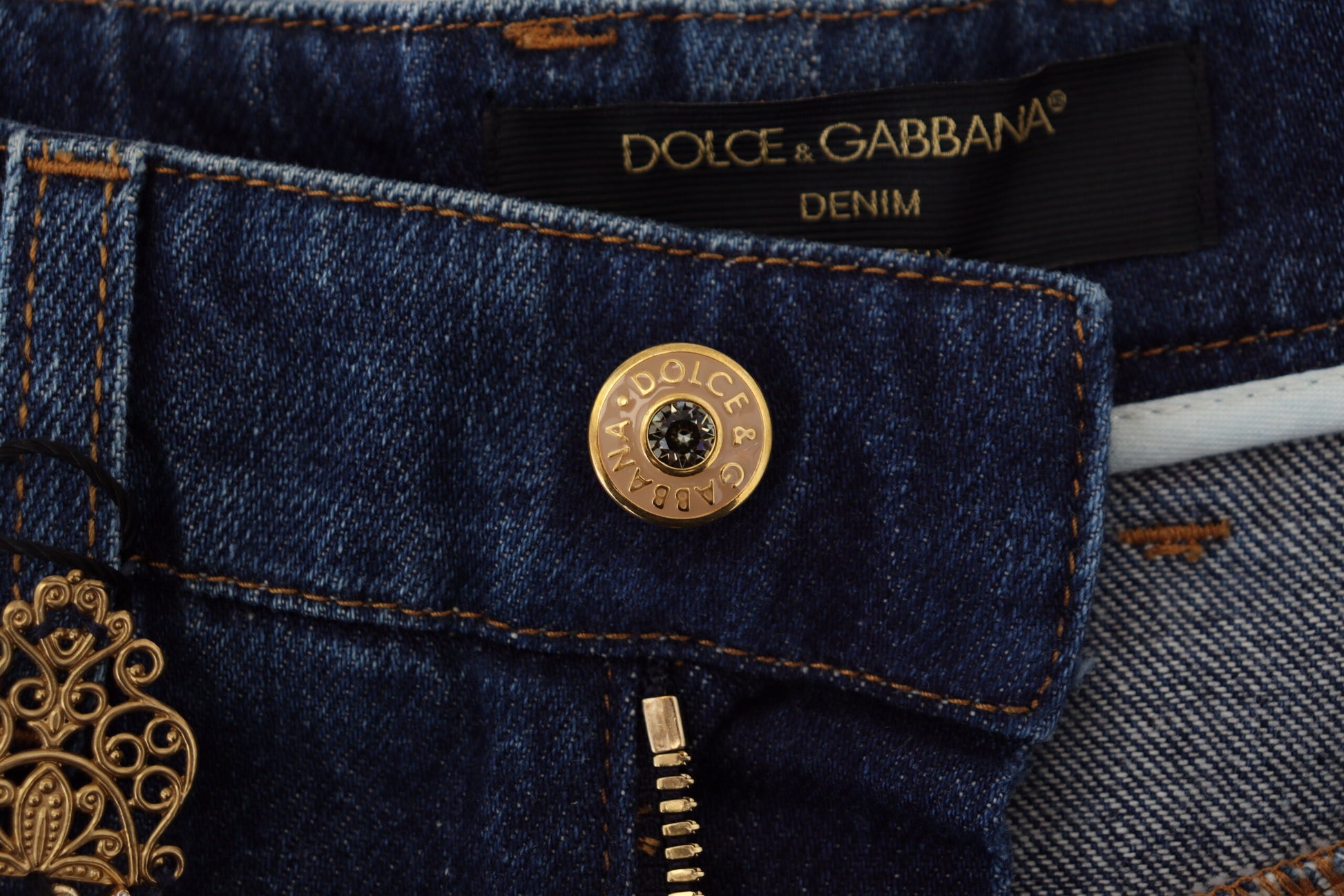 Dolce & Gabbana Blue Embellished Straight Denim Cotton Jeans