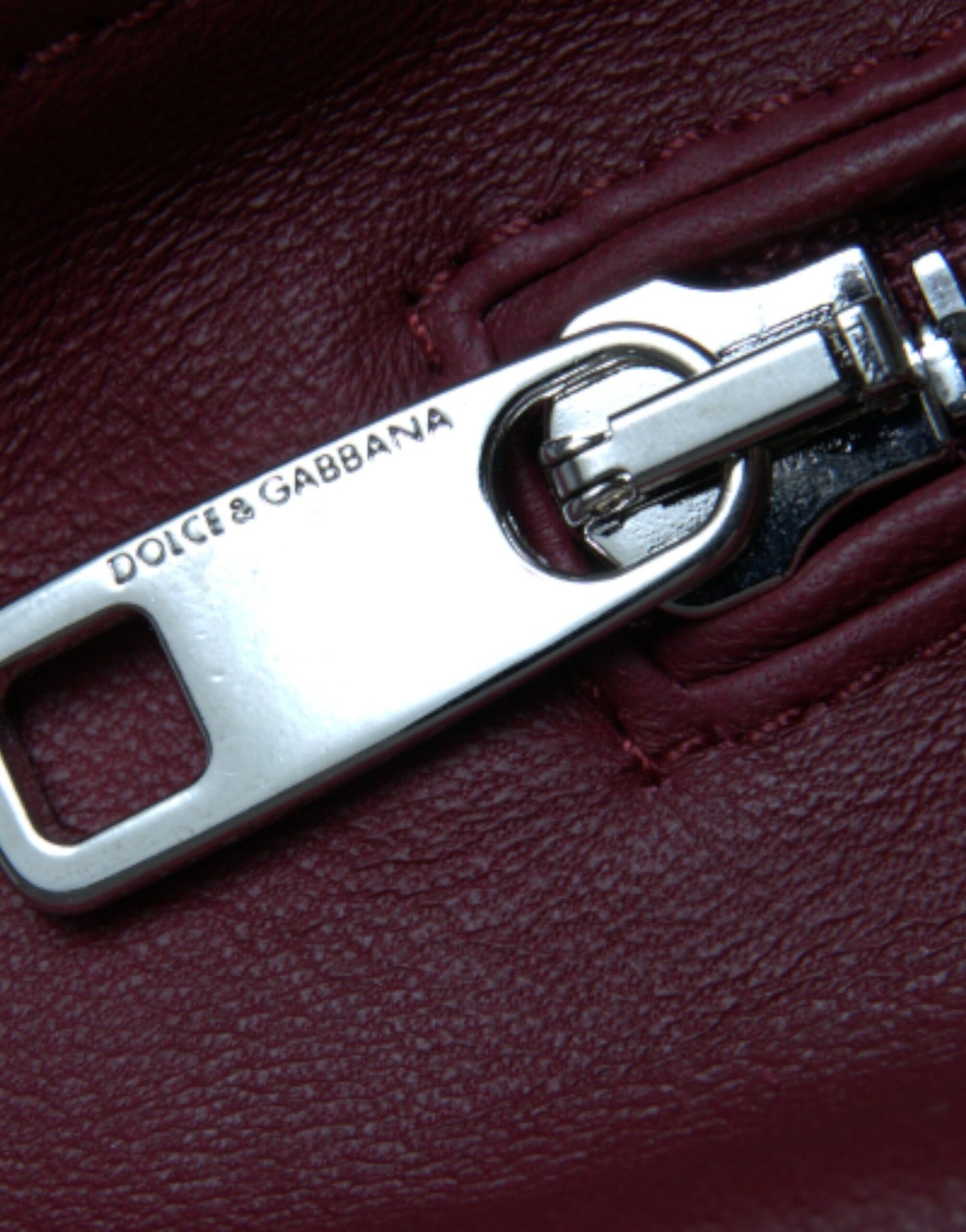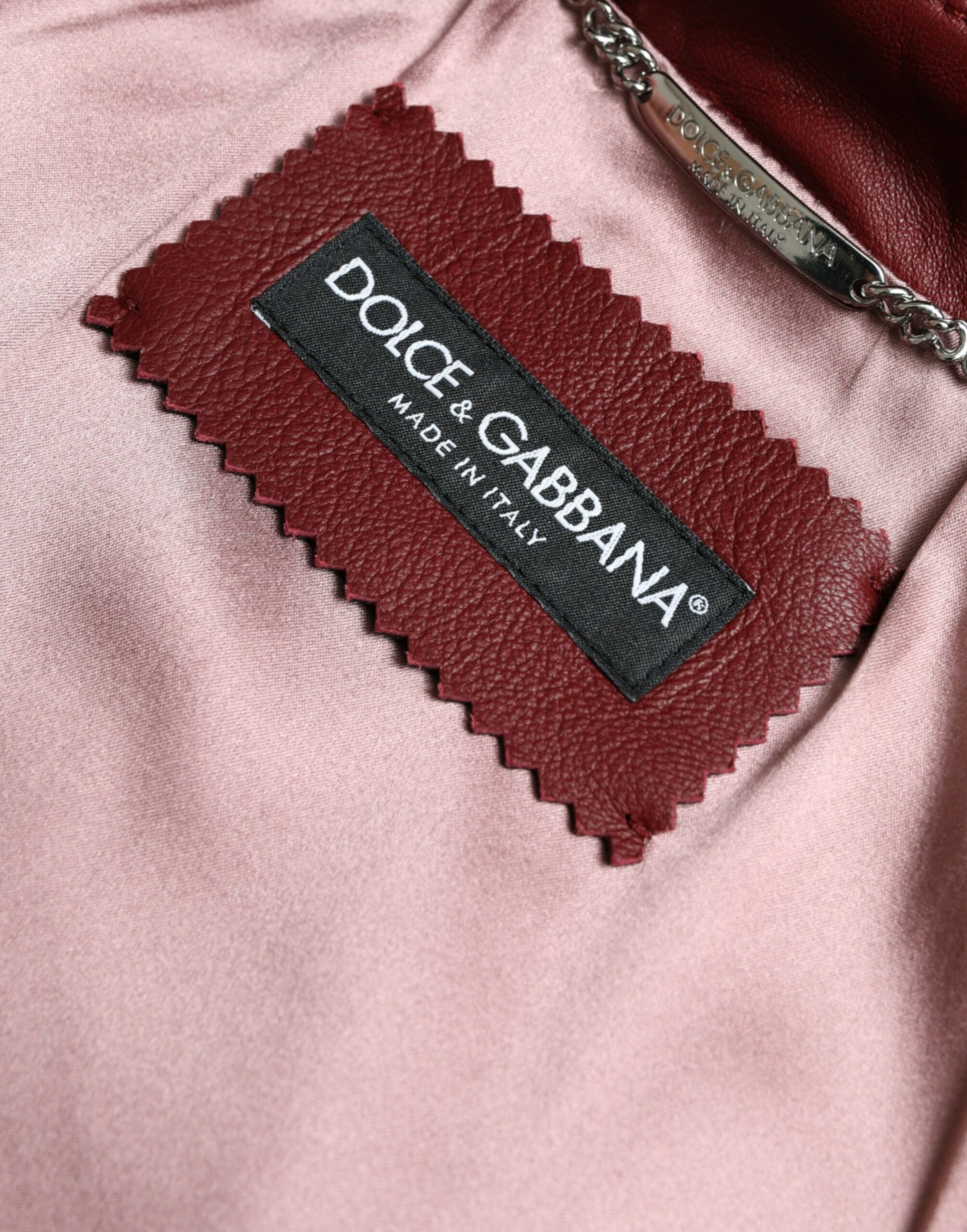 Dolce & Gabbana Bordeaux Leather Biker Coat Lambskin Jacket