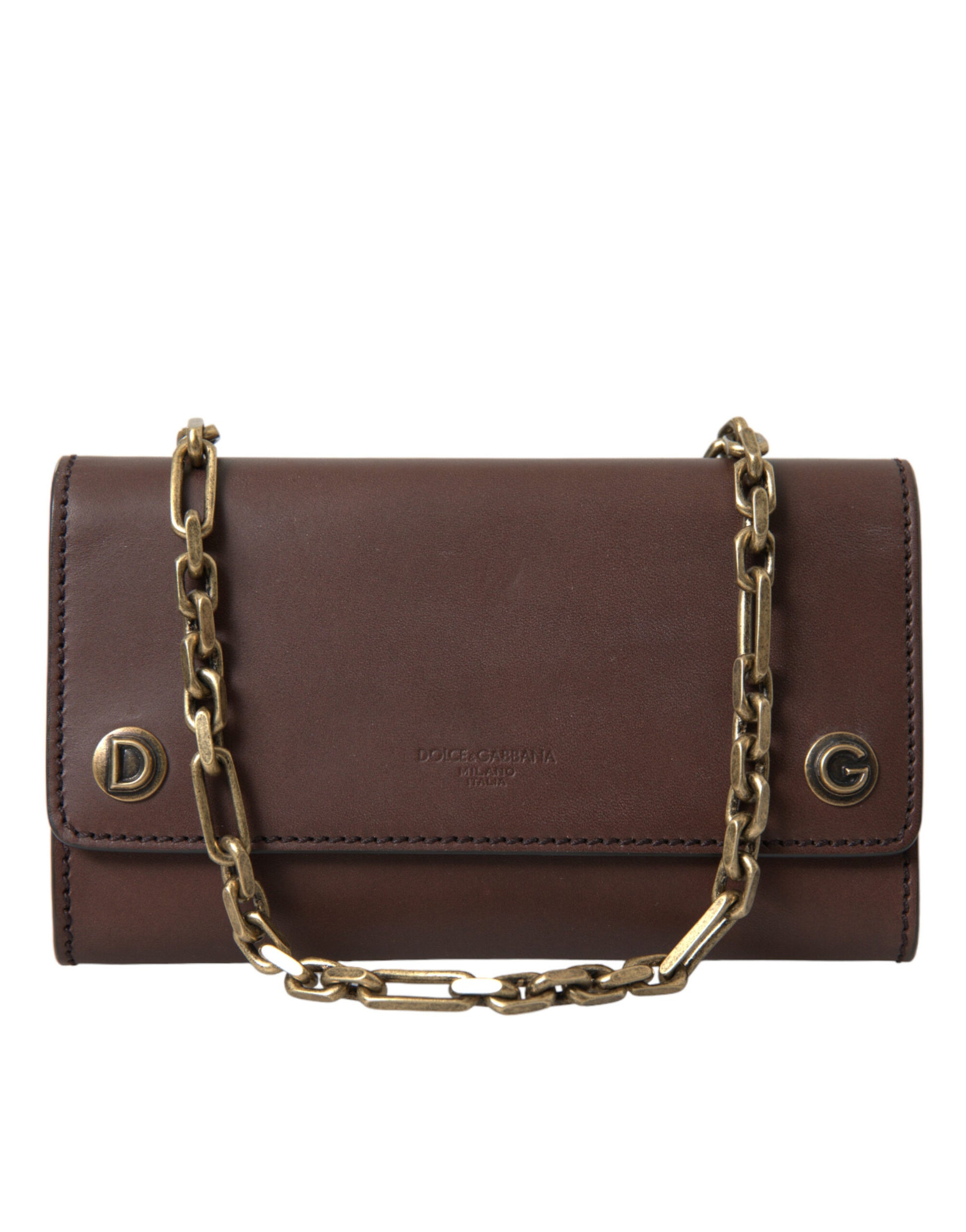 Dolce & Gabbana Brown Calf Leather Logo Embossed Shoulder Bags