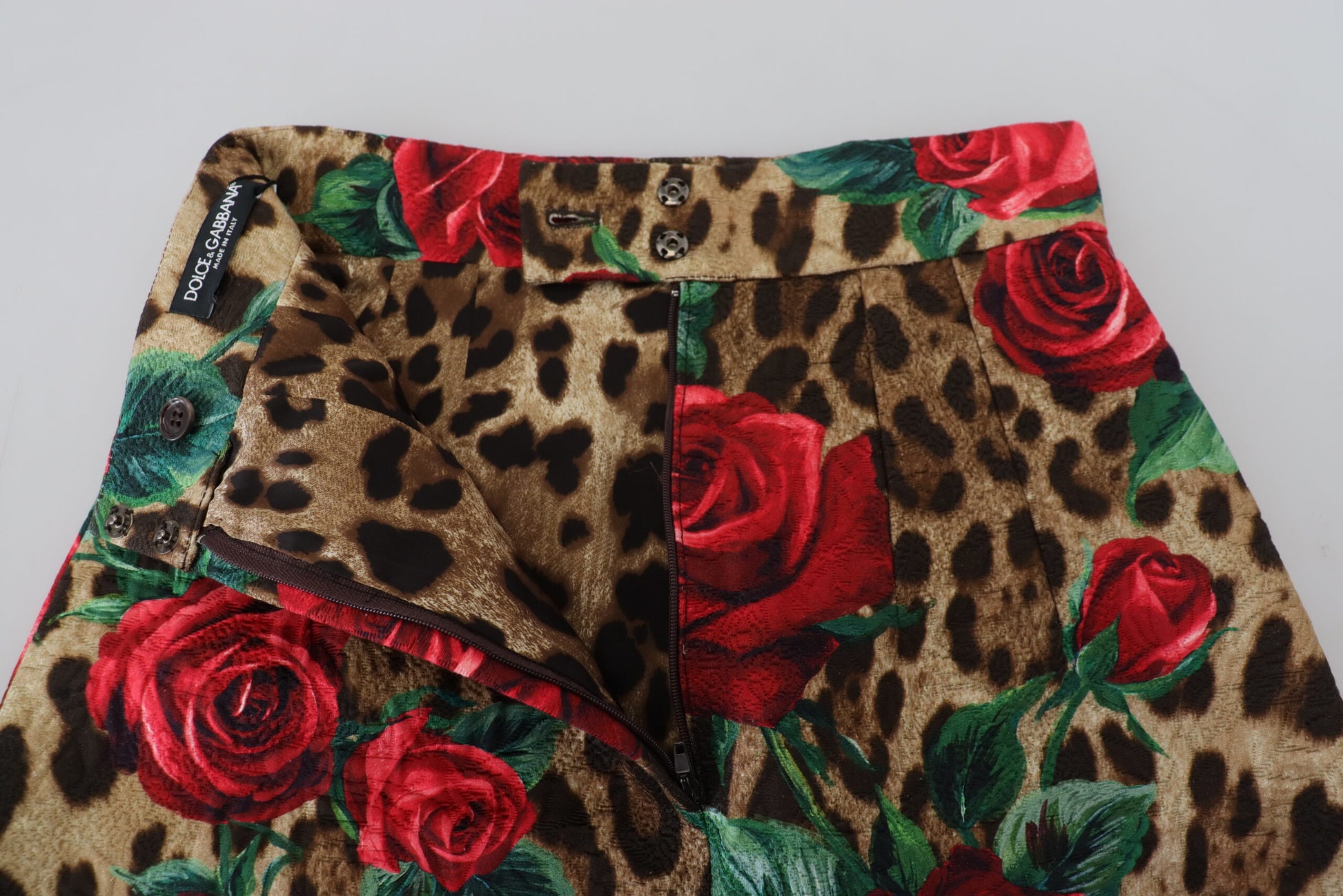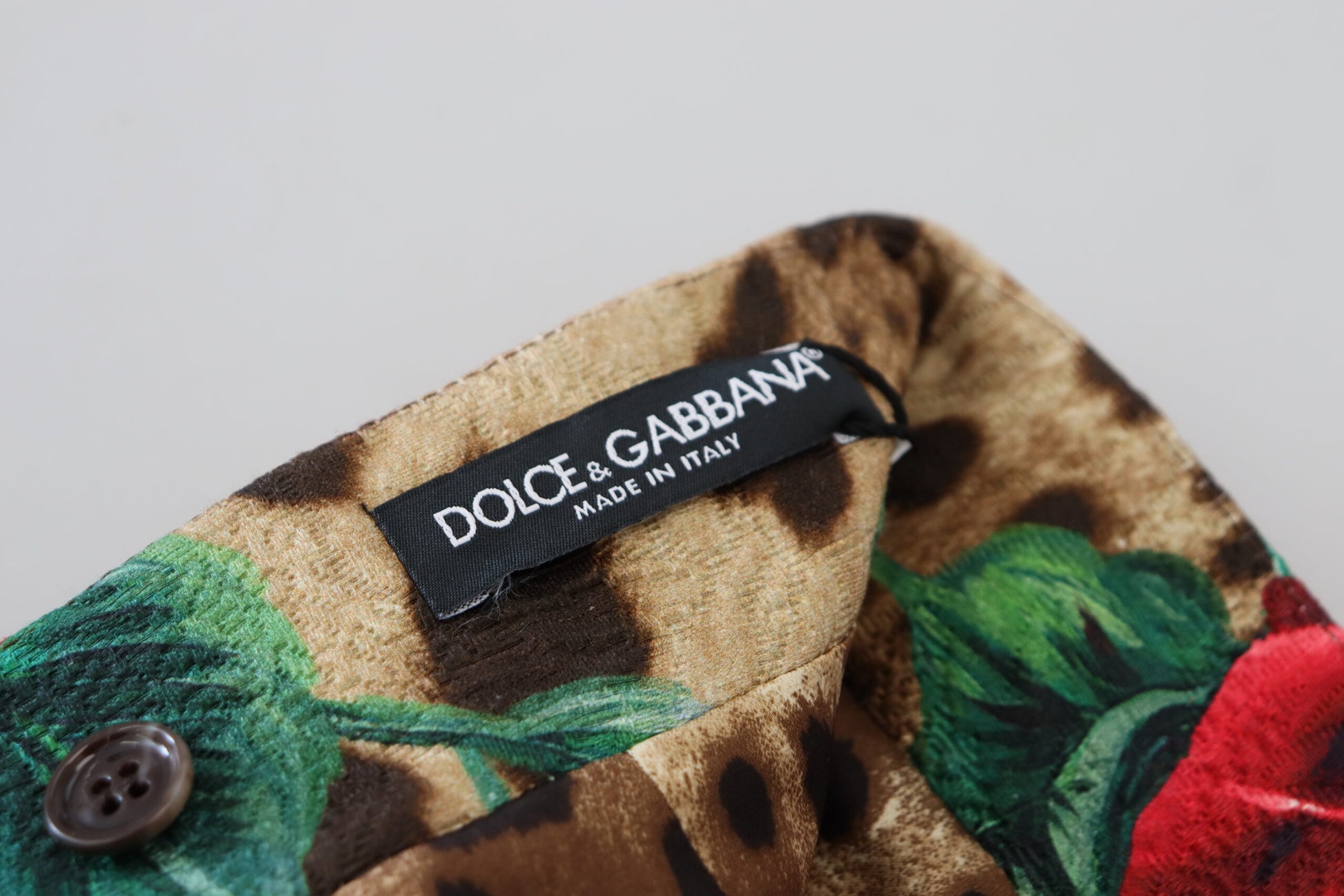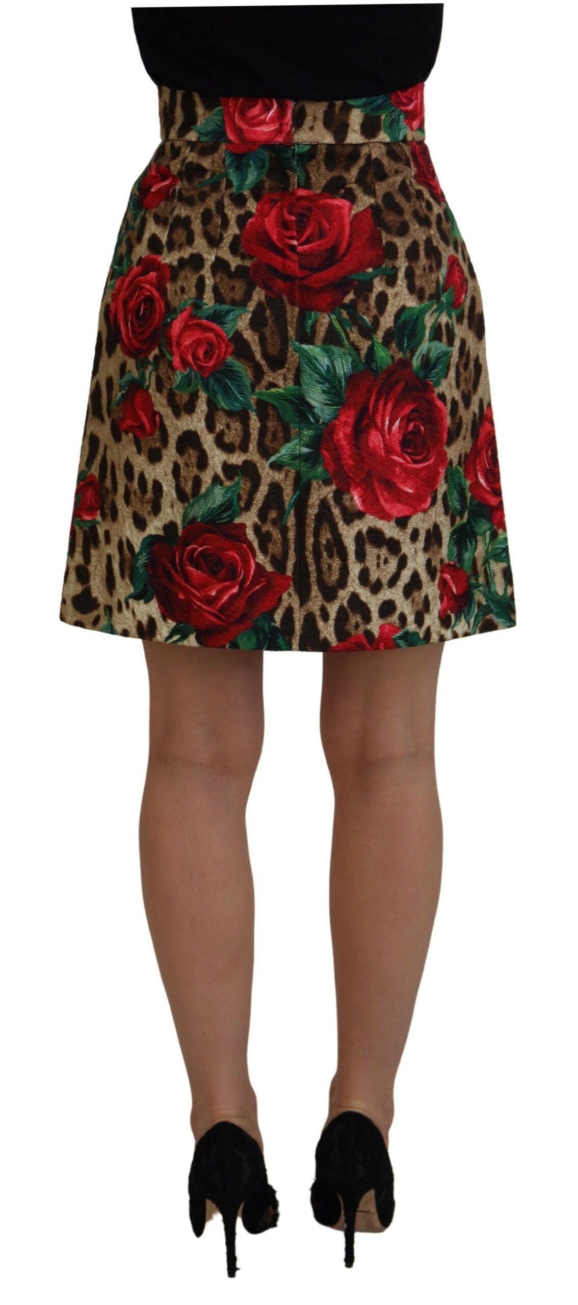 Dolce & Gabbana Brown Cotton Leopard Rose Print Mini Skirt