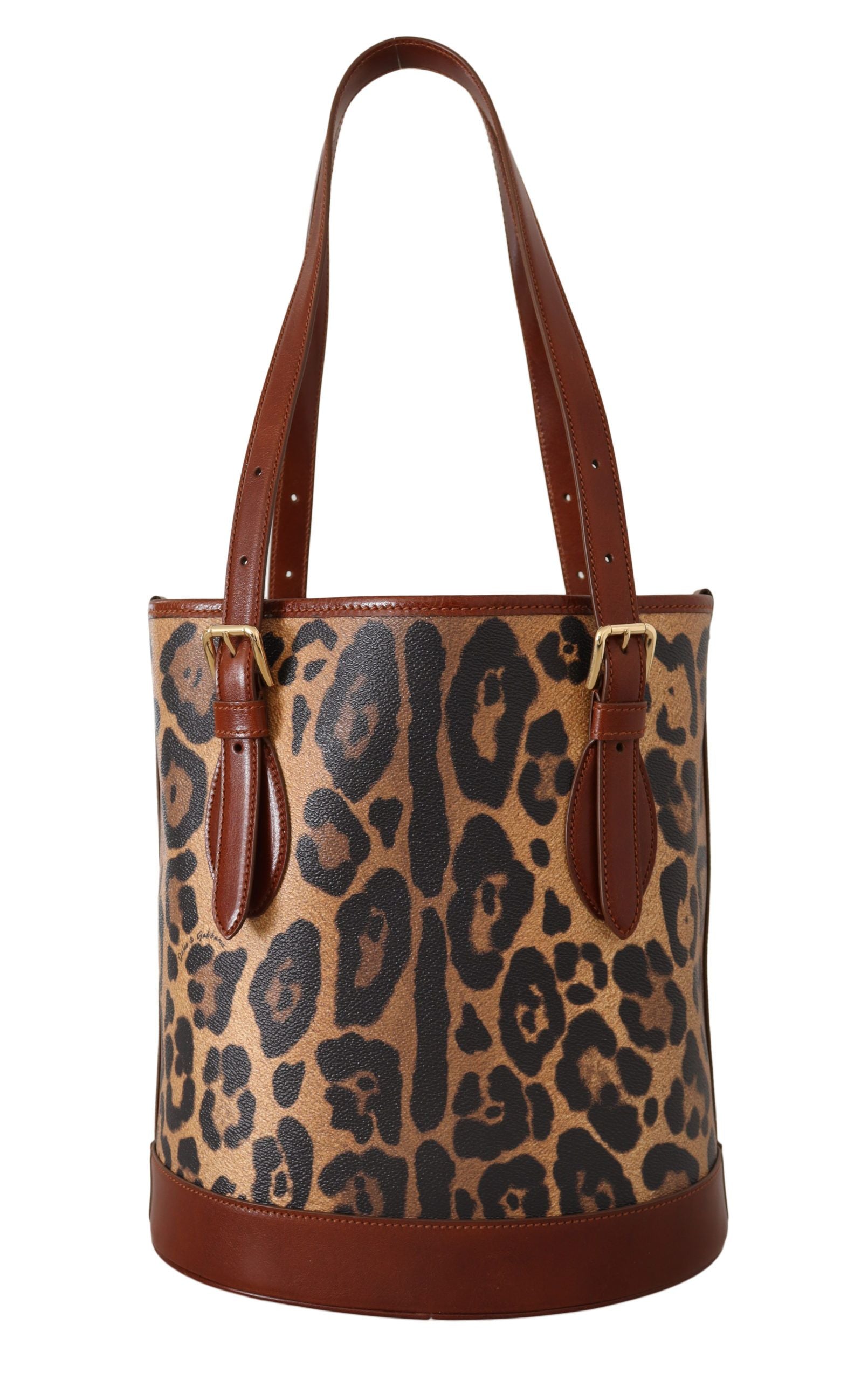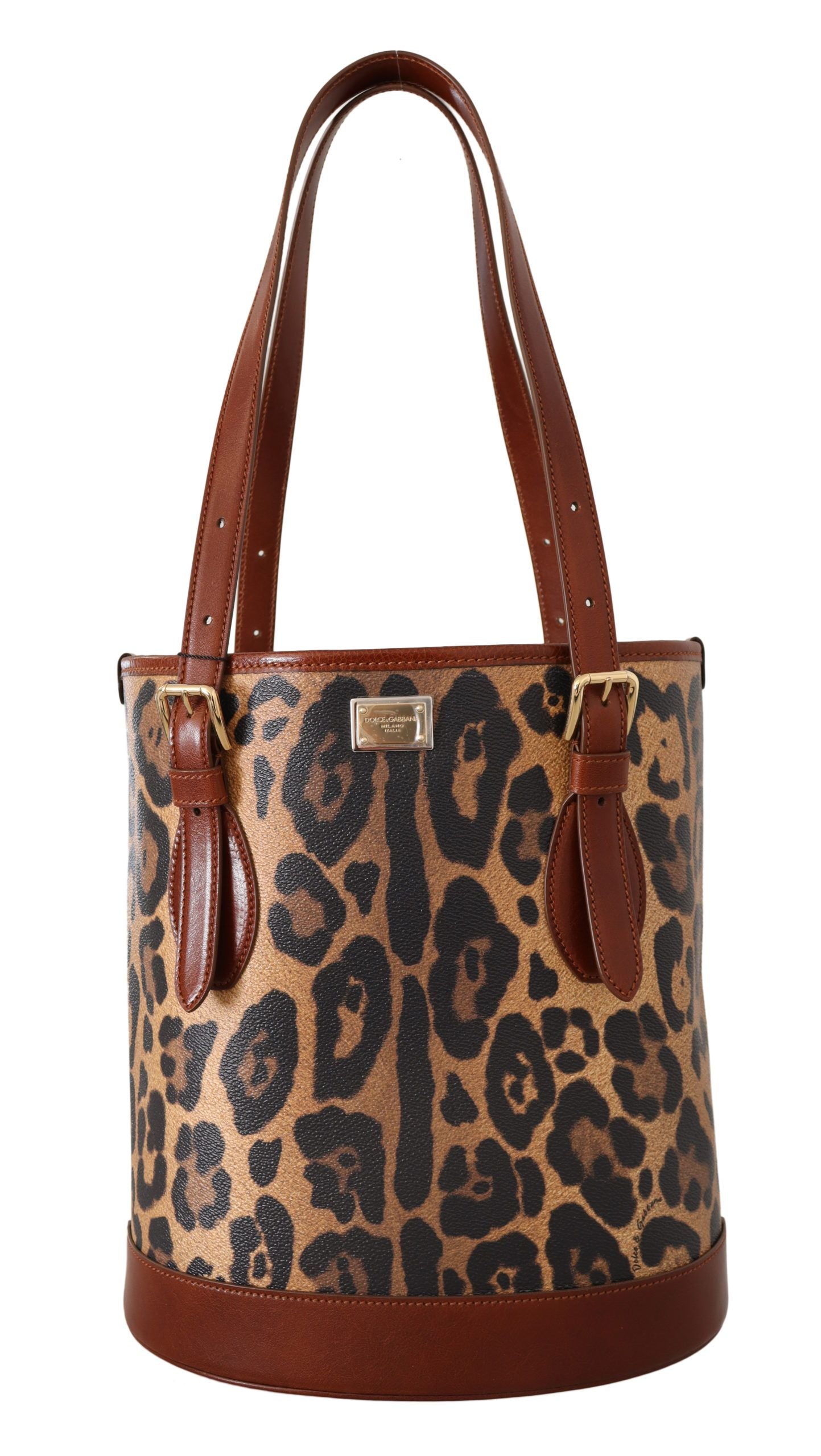 Dolce & Gabbana Brown Leopard Pattern Shopping Tote Hand Bucket Purse