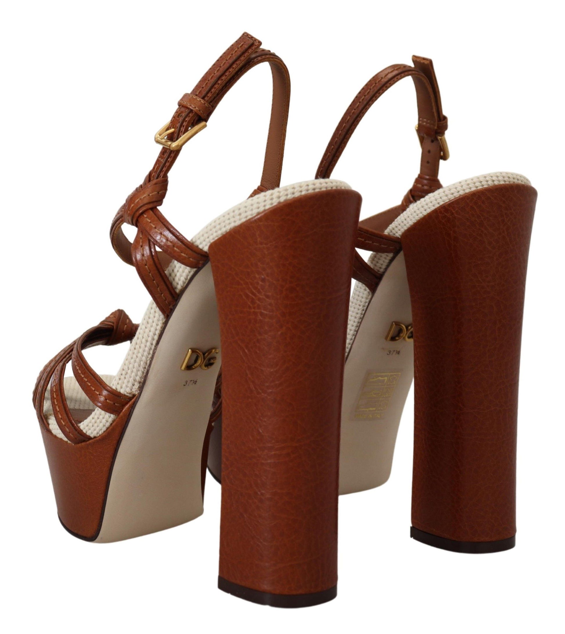 Dolce & Gabbana Brown Platform Leather Sandals Shoes