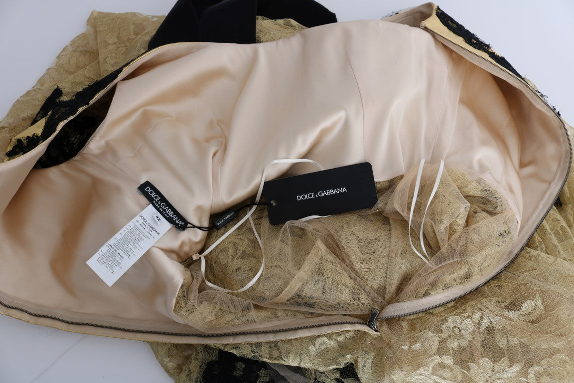Dolce & Gabbana Gold Black Floral Lace Dress