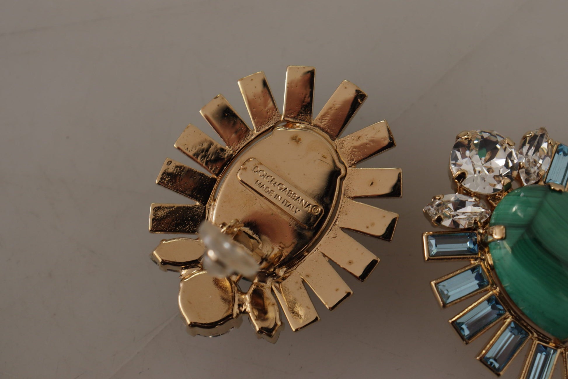 Dolce & Gabbana Gold Brass Blue Crystal Stone Clip-on Jewelry Sicily Earrings