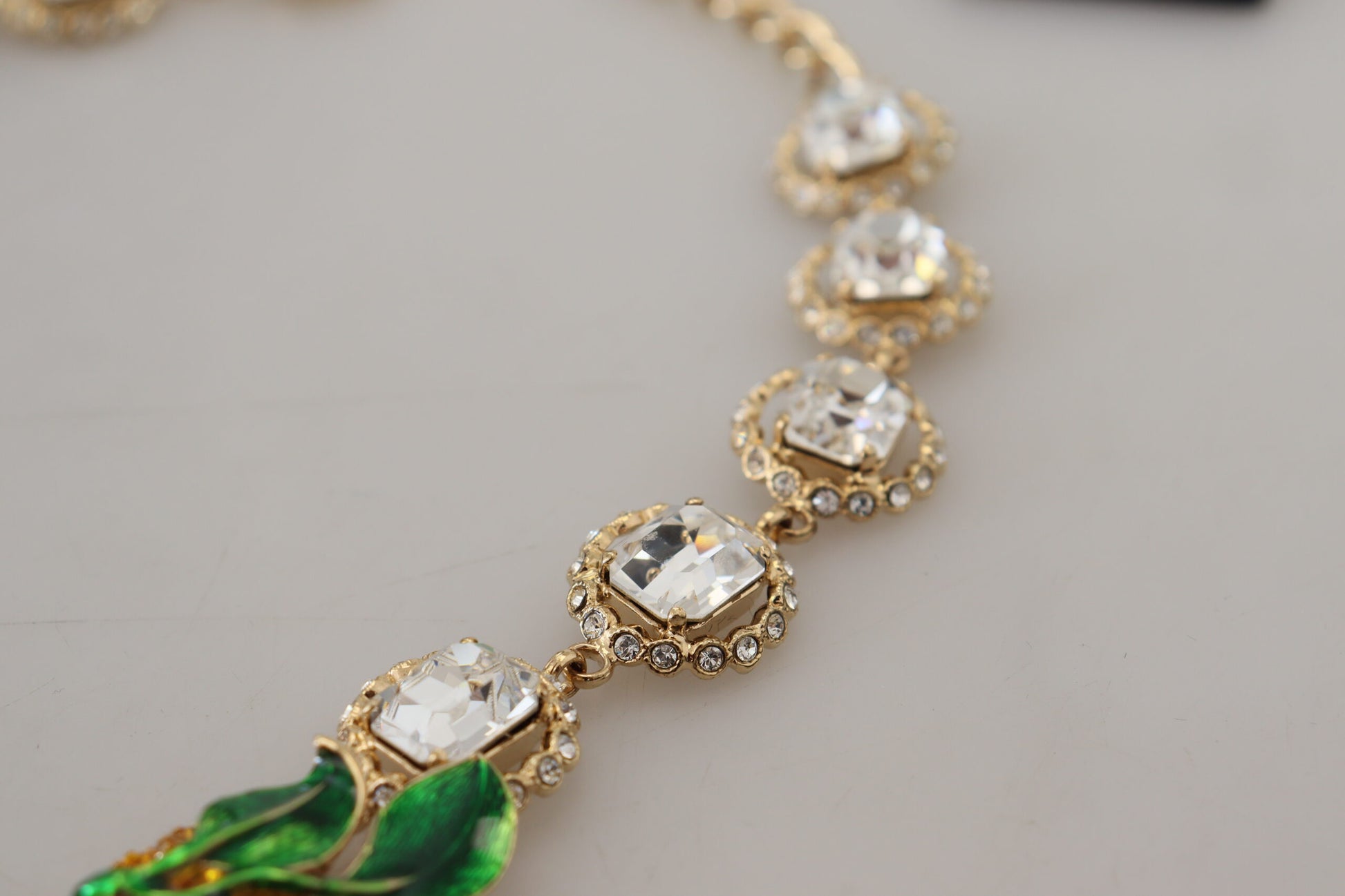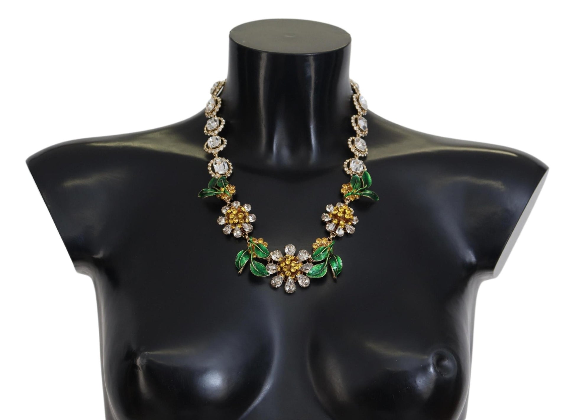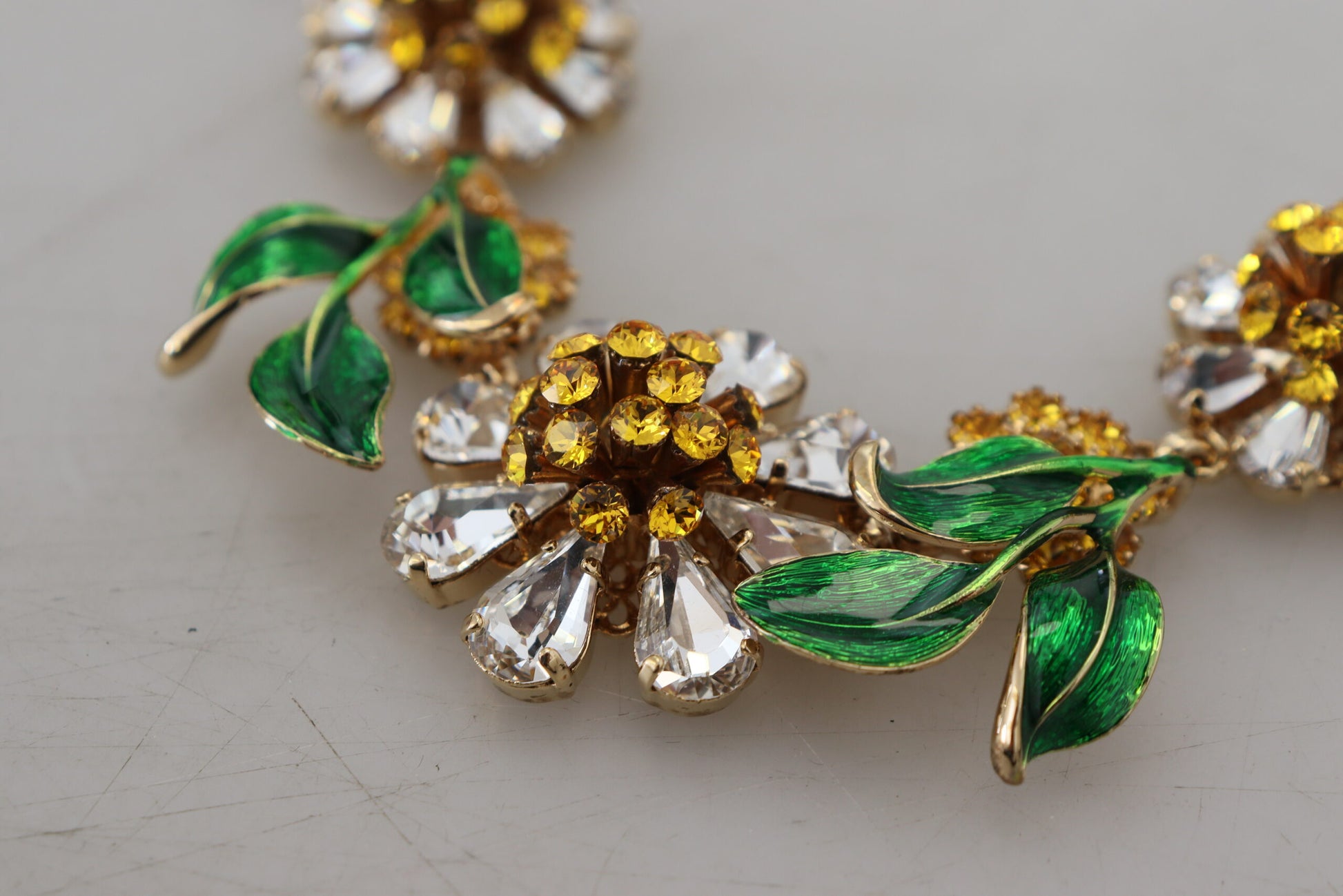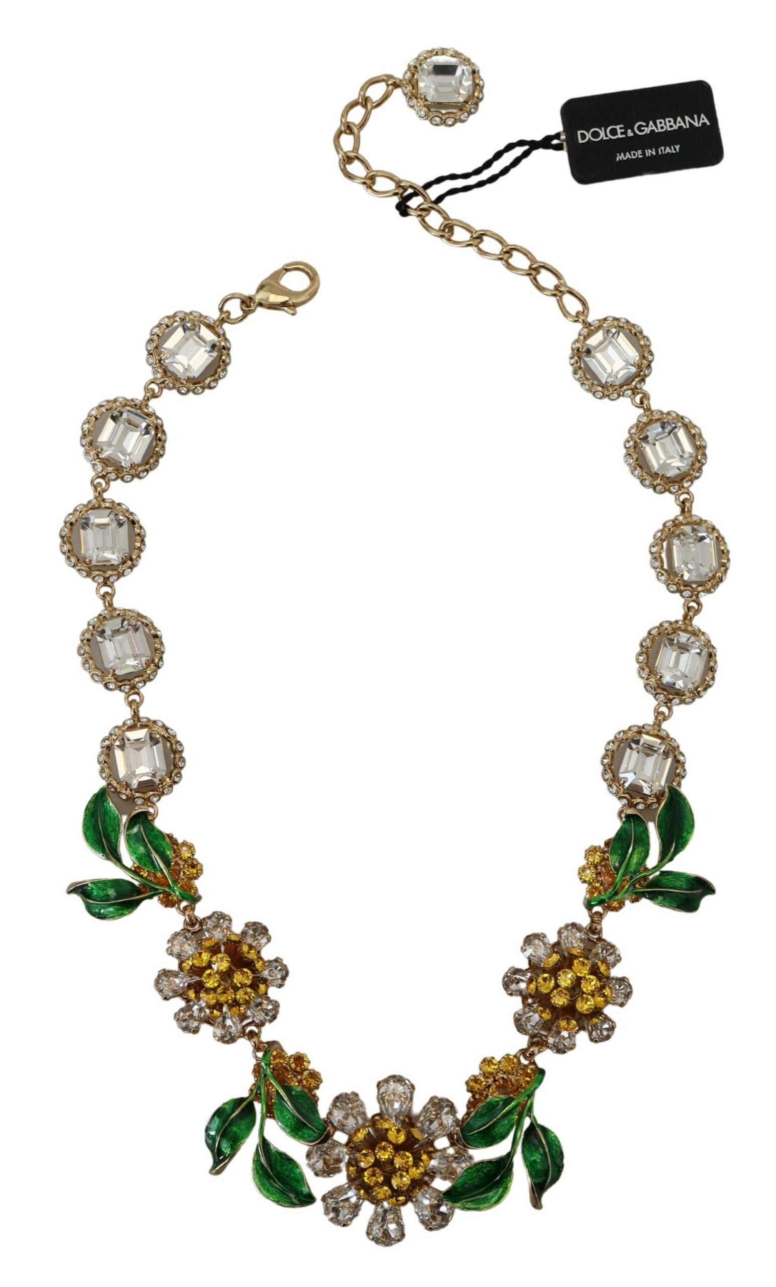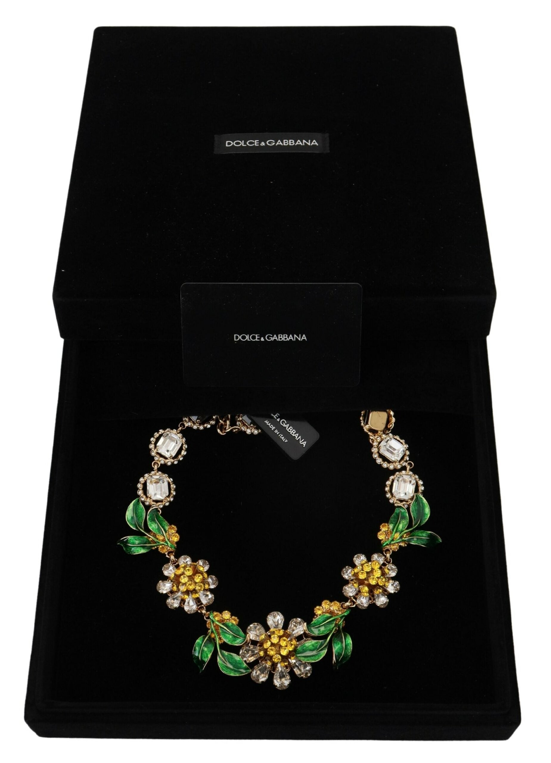 Dolce & Gabbana Gold Brass Crystal Logo Floral Statement Necklace
