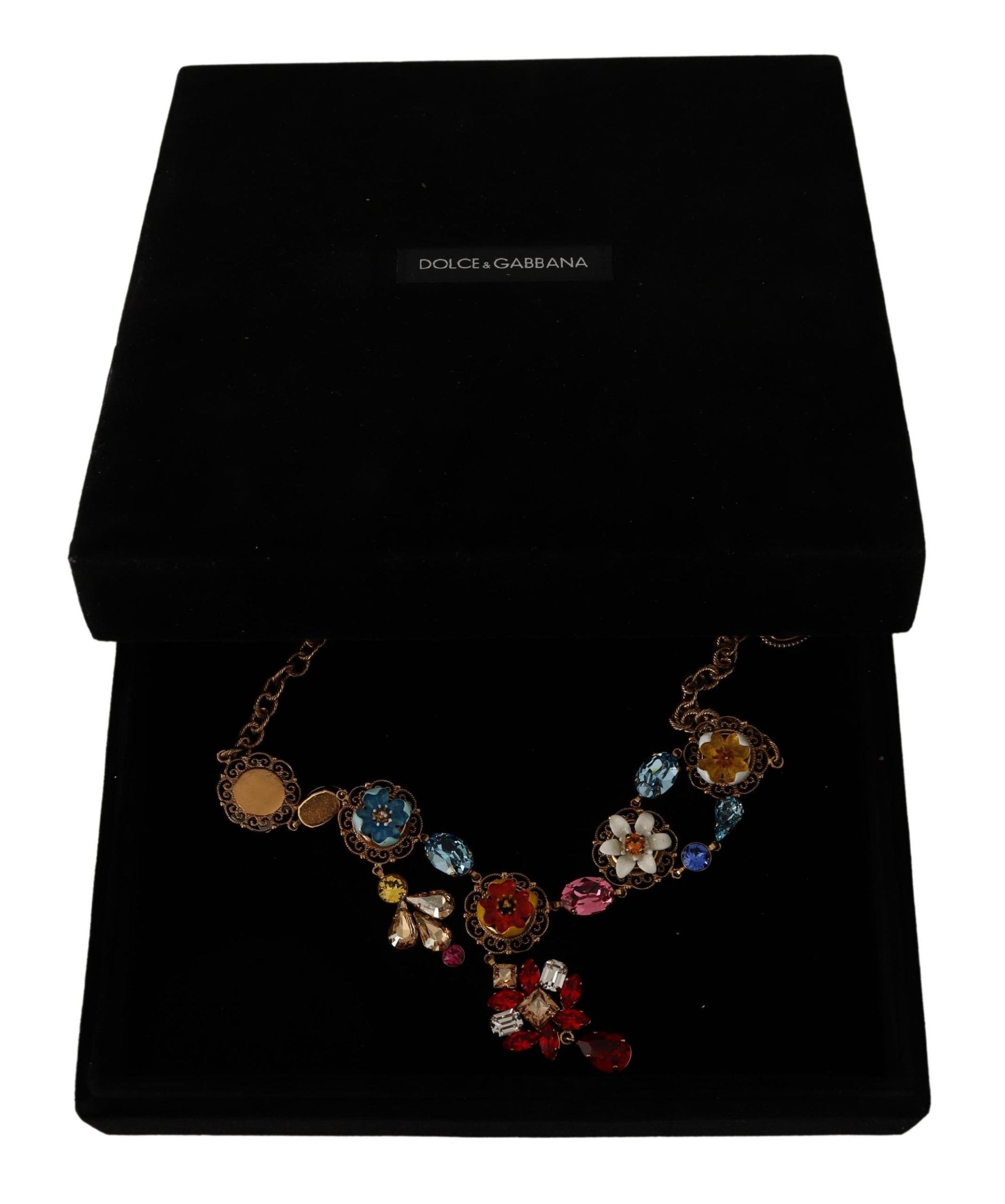 Dolce & Gabbana Gold Brass Floral Sicily Charms Statement Necklace