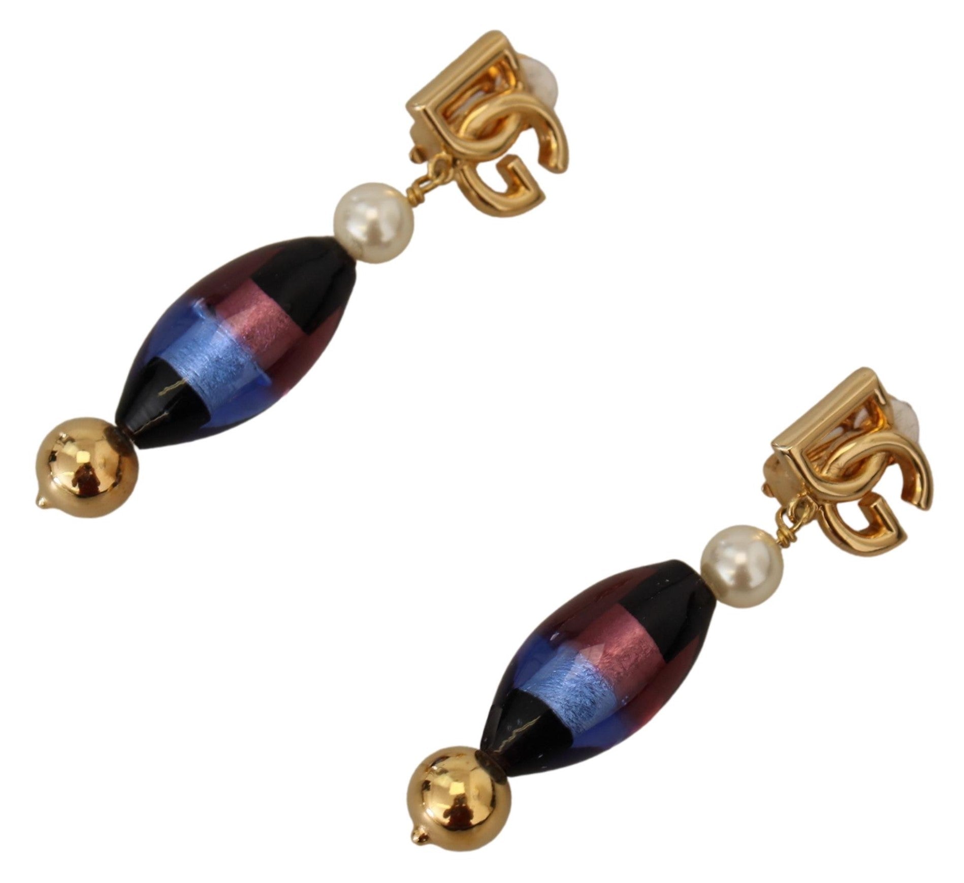 Dolce & Gabbana Gold Plated Brass Glass Design Dangling Earrings